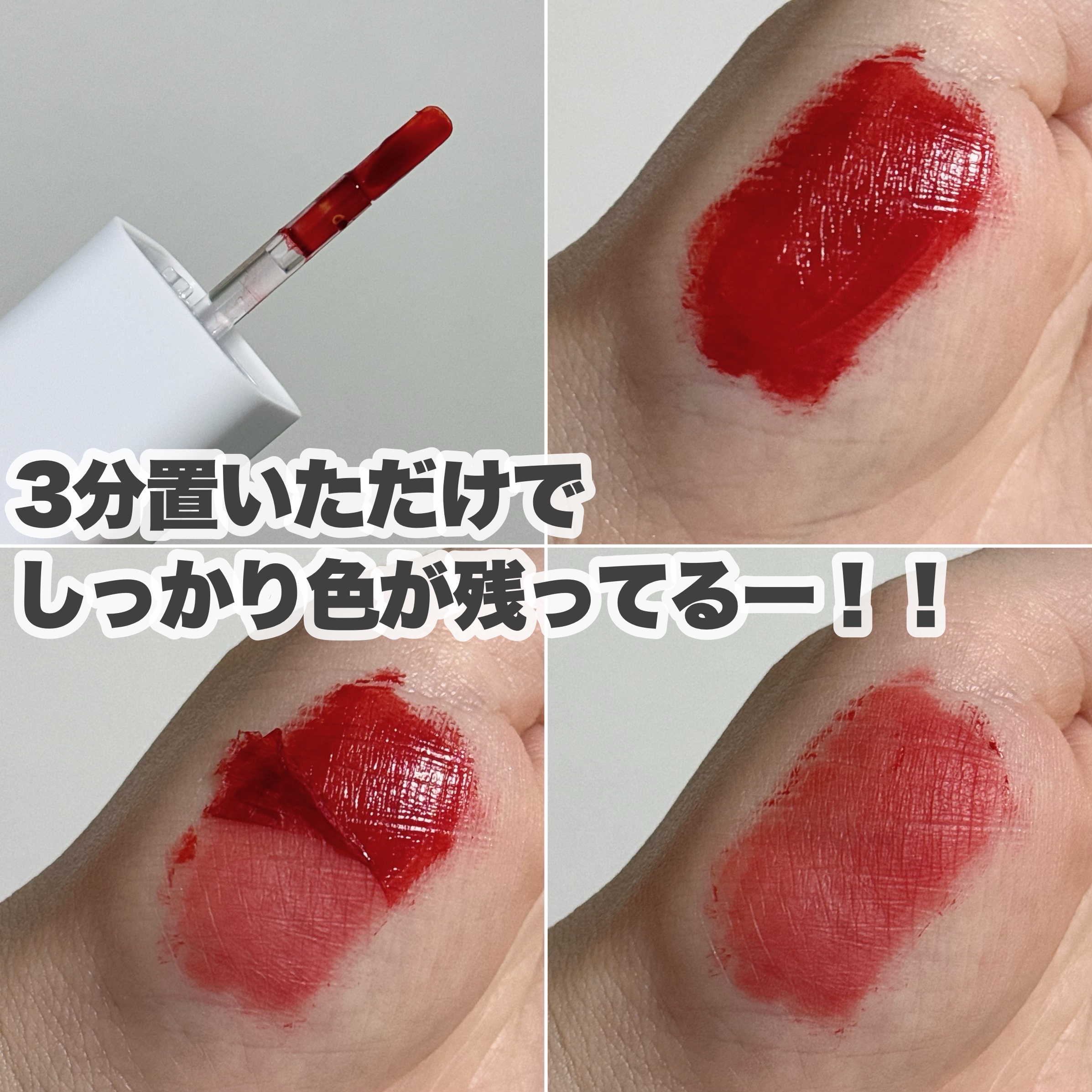 見た目は安定に可愛いし 持ってるだけでテンションあがる🤍 リップパック効果もあり 何と言ってもツヤも発色も凄い🌼 マスクうつりもしますし、持ちは良くないですが 手にスウォッチした際には少し残りました🌼 マスク生活が早く終わることを願って 1本買っておくのがオススメ🤍