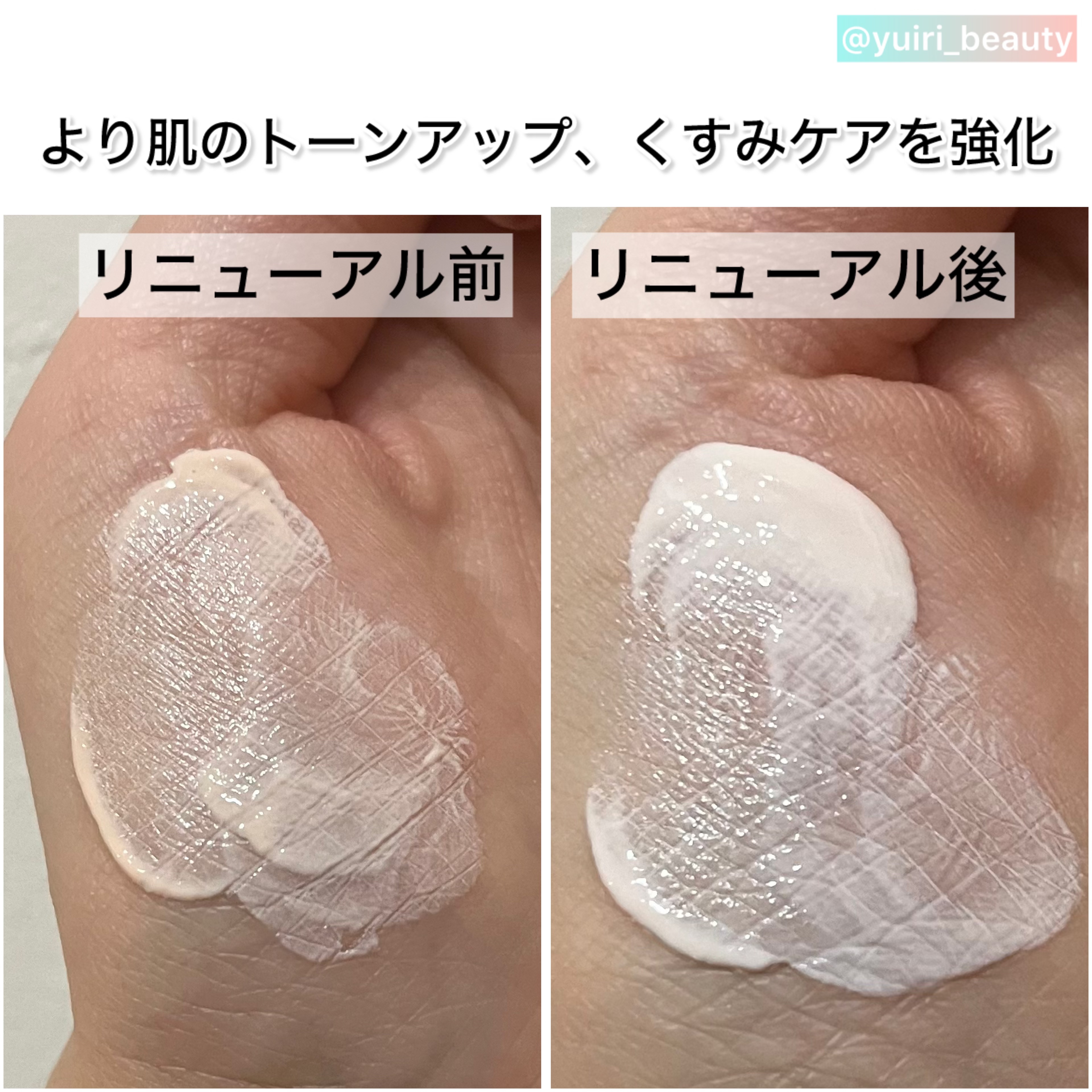 進化しなくても充分素晴らしすぎるのに!?って思ってたけど使ってみたらめちゃくちゃ良かった🥹 反射力アップ+黄ぐすみ補正してなめらかな生ツヤ肌に! 新UVフィルター設計で、深刻なダメージを与えるロングUVAの防御力がより強化されたんだって!