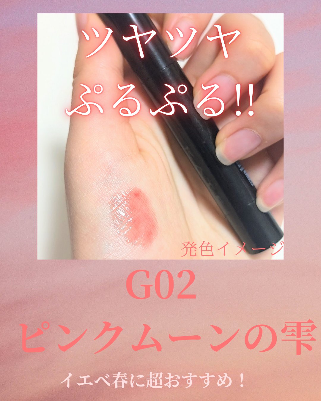 リップモンスターは通常版?とスフレマットのそれぞれ何色か購入していたのでツヤタイプも期待して遅れながらも購入。 本当に艶たっぷりで、ひと塗りでうるっとしたむちむちの唇になれます。 ピンクムーンの雫は、血色感のあるピンクが可愛くてお気に入りです。