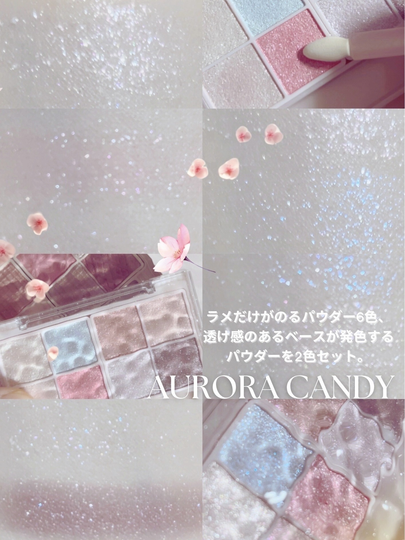 ラメカラー6色と透け感のあるベースパウダー2色で構成されたミニサイズのパレット✨ 繊細パールがキラキラして、とにかくカワイイ! 「S01 オーロラキャンディ」はブルベさん、「S02 マカロンキャンディ」はイエベさん向きだと思うのですが、1つのパレットに8色もあって、いろいろなアレンジが楽しめます。 持ち歩きにも便利なコンパクトなサイズだから、メイク直しの時に追いラメしてます(^^)