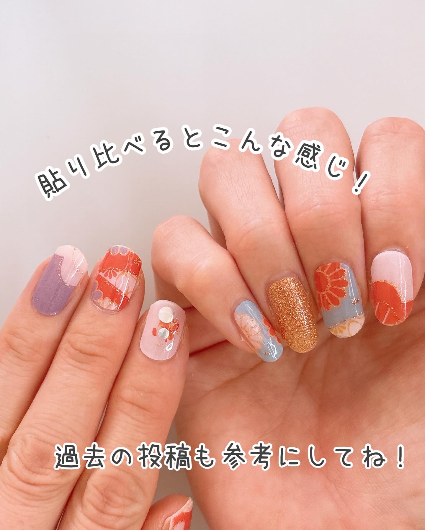 【袴ネイルのネイルデザイン】キャンドゥ ライトキュアリングUVジェルネイルシールの口コミ - 超優秀!100均で買えるおすすめネイルシール!100均のネイルシールの中では1番気に入っ