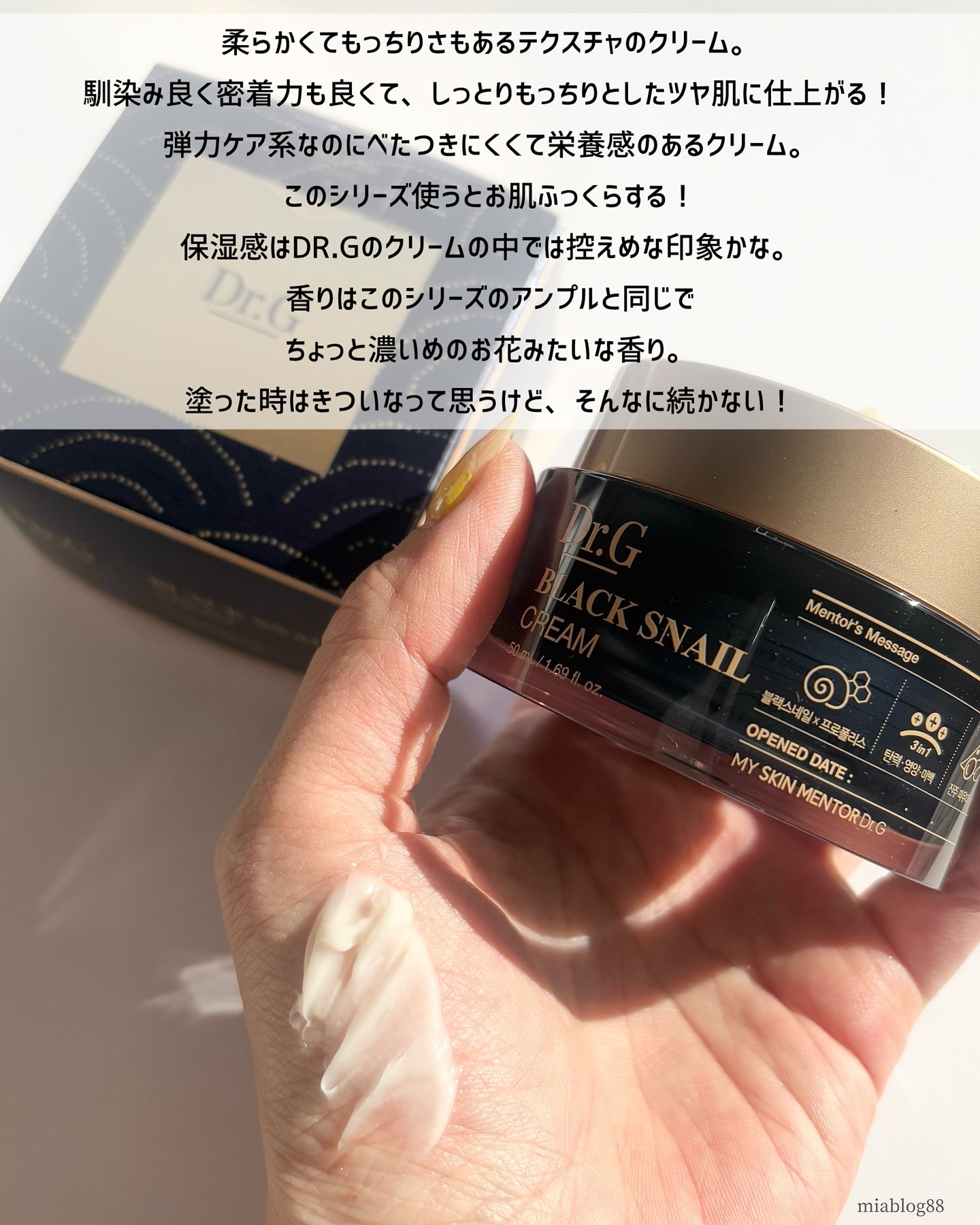 こっくりクリームがたまらん!乾燥さん集まれ! Dr.Gレッドブレミッシュシリーズのクリームは友達にオススメしたらガチでハマってリピ買いしてたくらい人気商品!! ブラックスネイルクリームは保湿だけでなくて美白、しわ、弾力のケアまでできちゃう!ブラックスネイルを20%配合! 香りがもう好きでDI○Rのカプ○ュールシリーズの香りがする! こっくりクリームテクスチャーで少量でよく伸びるし馴染みもいい