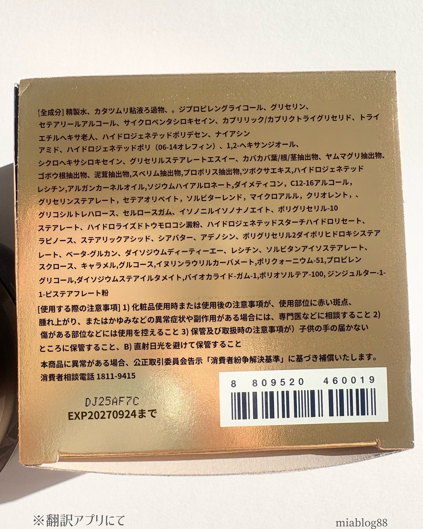 - <50ml> 酸化チタン、ペンチレングリコール、BG、グリセリン、ジメチコン、キサンタンガム、スクワラン、香料、エタノール、ビルベリー葉エキス、レシチン、グリコシルトレハロース、加水分解水添デンプン、PG、シア脂、オレンジ果皮油、トリエチルヘキサノイン、アルミナ、ステアリン酸、カプリリルグリコール、ツボクサエキス、ウコンエキス、スベリヒユエキス、トリエトキシカプリリルシラン、DPG、ステアリン酸グリセリル、セテアリルアルコール、ステアリン酸ポリグリセリル-10、セルロースガム、ポリクオタニウム-51、セラミドNP、ベタイン、カラメル、ポリソルベート60、コレステロール、水添ポリイソブテン、ベルガモット果実油、ラフィノース、セテアリルグルコシド、パンテノール、パルミチン酸、シクロメチコン、1,2-ヘキサンジオール、イソノナン酸イソノニル、ステアリン酸グリセリル(SE)、精製水、EDTA-2Na、(アクリレーツ/アクリル酸アルキル(C10-30))クロスポリマー、トリ(カプリル酸/カプリン酸)グリセリル、グレープフルーツ果皮油、ジポリヒドロキシステアリン酸PEG-30、水添ポリデセン、スクロース、ナイアシンアミド、ラウリルカルバミン酸イヌリン、結晶セルロース、パルミトイルペンタペプチド-4、アトラスシーダー樹皮油、トロメタミン、ステアリン酸PEG-100、サッカロミセス培養液、アデノシン、パール、ビオサッカリドガム-1、ローズ油、加水分解コーンスターチ、アラビアゴム、カミメボウキ葉エキス、β-グルカン、ゼラニウム油、ジャスミン油、(C12-16)アルコール、オリーブ油脂肪酸セテアリル、オリーブ油脂肪酸ソルビタン、ナス果実エキス、ヤマノイモ根エキス、メリアアザジラクタ葉エキス、コクシニアインディカ果実エキス、サンゴモエキス、ステアロイルグルタミン酸2Na、フェルラガルバニフルア樹脂油、葉酸、チョウジ葉油、ジポリヒドロキシステアリン酸ポリグリセリル-2、ビャクダン油、カタツムリ分泌液、(カプリル/カプリン酸)ヤシアルキル、(アクリル酸ヒドロキシエチル/アクリロイルジメチルタウリン)コポリマーNa、ゴボウエキス、メシマコブエキス、アロエベラ花エキス、ローマカミツレ油、コウスイガヤ油、イランイラン油、水添C6-14オレフィンポリマー、カバエキス、ダイウイキョウ油、水添レシチン,アルガニアスピノサ核油、ヒアルロン酸Na,レモン果皮油、エチルヘキシルグリセリン,フェノキシエタノール