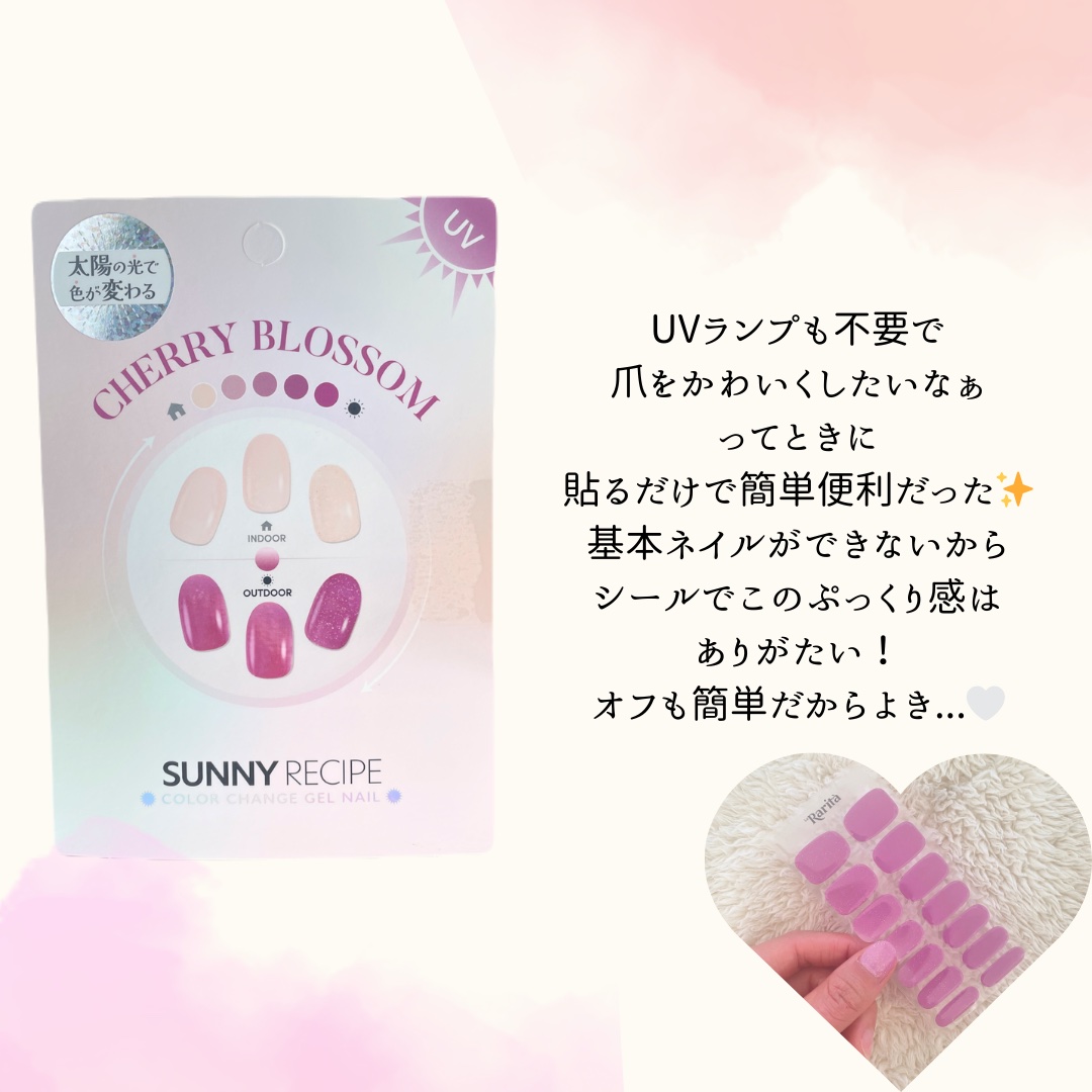 太陽の光でカラーが変わるジェルネイルシール。屋内・屋外、紫外線の強さにより様々なカラー変化が楽しめるこれまでになかったジェルネイルシールです☼ 貼るだけでサロン級の仕上がりですし、UVランプ不要で自然に硬化で簡単すぎる!!!! ほんもののジェルネイルのようなぷっくり感。太陽で色が変わるのが面白い!!