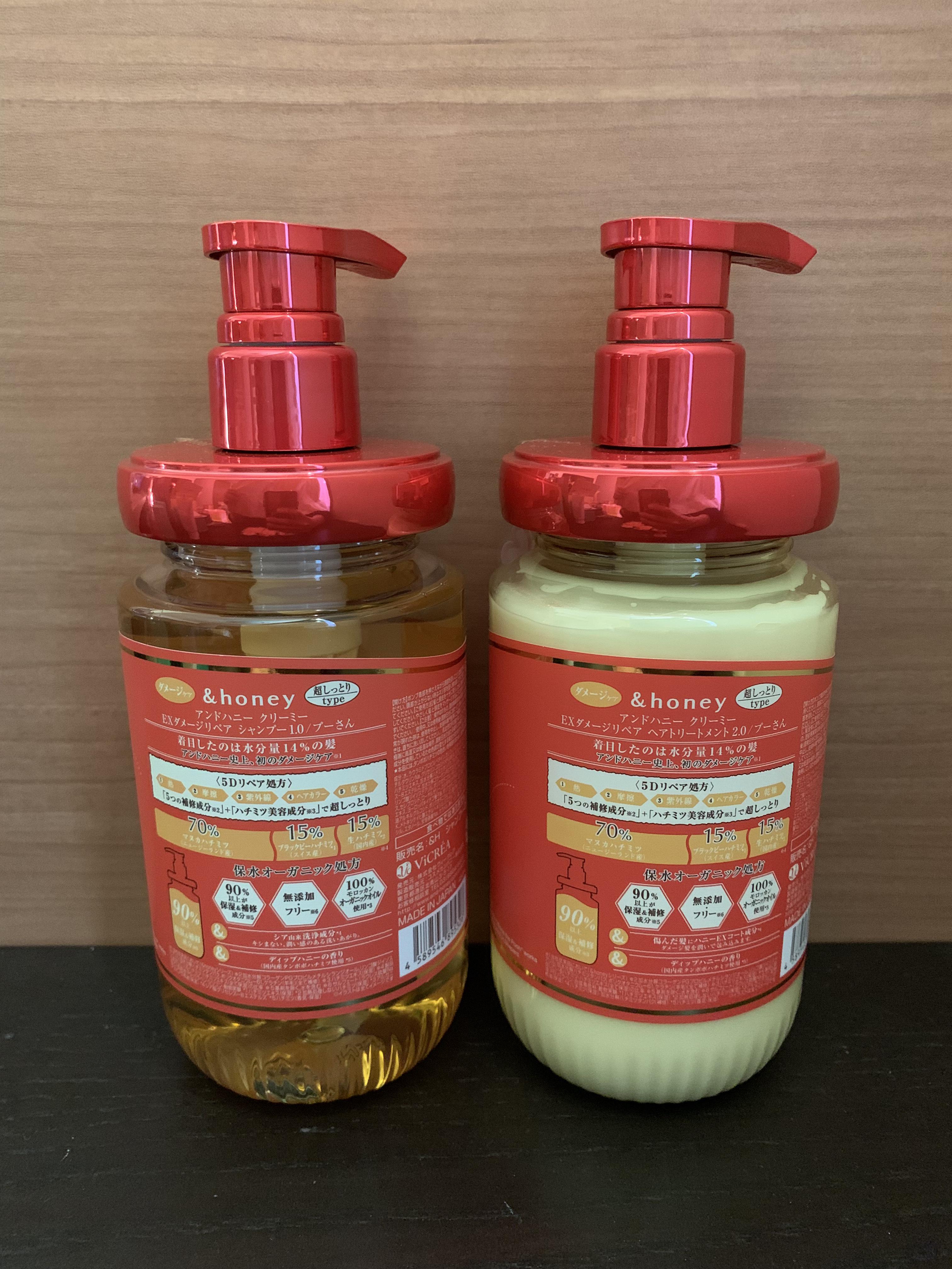 &honeyCreamyEXダメージリペアシャンプー1.0ヘアトリートメント2.0【詰替用】アエナで2つ合わせて、約800円ほどで購入しました!●シャンプーモッタリとした重めのテクスチャです。甘い香りがするので、最初は少しキツかったです。持続...