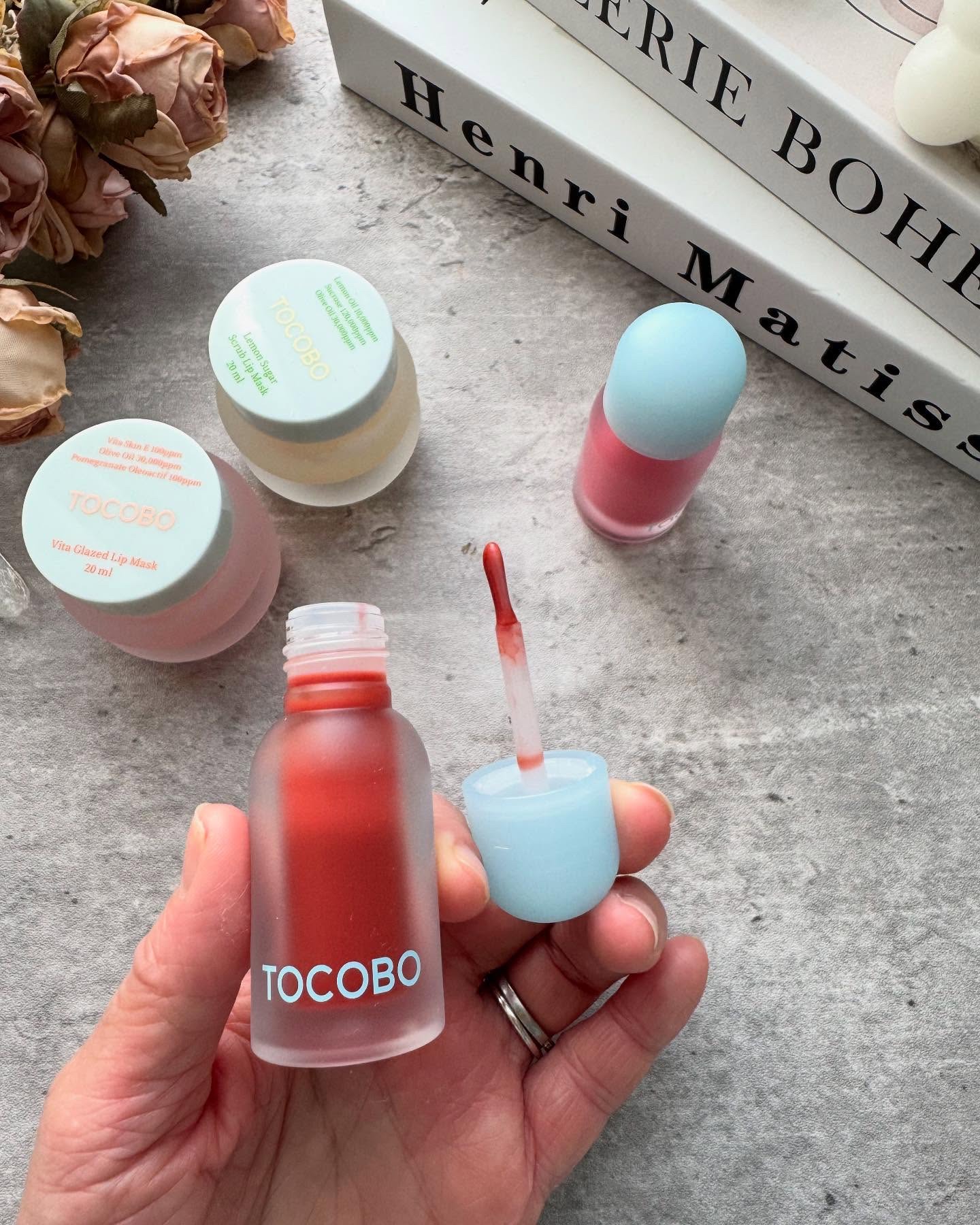 TOCOBOさんのリップ、ぷるんとした厚膜が可愛いから大好きなんだけど、ケアアイテムもいいね!?と思った話🥺🩷 ビタグレーズドリップマスクはグレープフルーツの香り、とのことだけどヨーグルトっぽい香りがした✨ケアが楽しくなる香りとも言える🥺 ジューシーベリープランピングリップオイルの14 ピーチネクターと16 アップルマンゴーは日本限定色👏どちらも透け感のあるカラーだからPC問わずに使えそう🥺