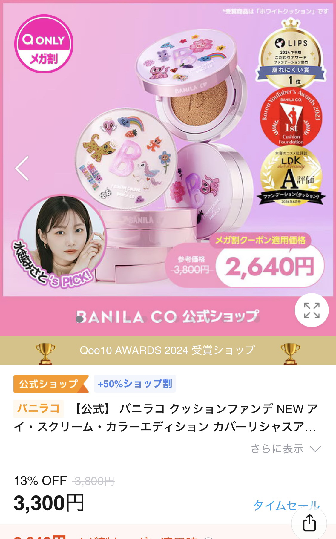 BANILA CO カバーリシャス アルティメット ホワイトクッション | 2,970円 |