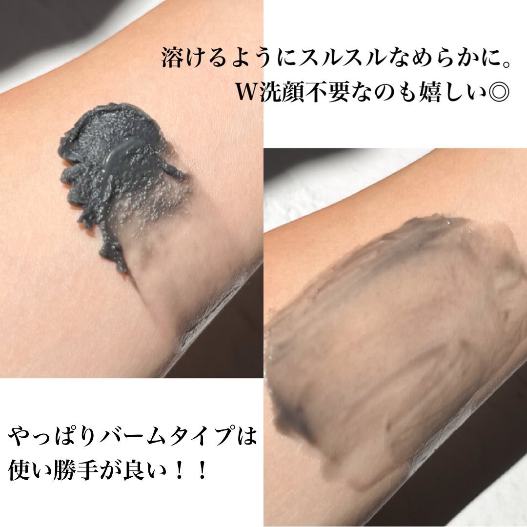 約80%がスキンケア成分💧 角栓溶解オイル*1やAHA含有エキス*2、炭*3の力で黒ずみ汚れ・角栓を徹底オフ✨ お肌の上でとろける感覚がたまんない〜!濃いメイクもするするオフしてくれてつっぱらずしっとりとした洗い上がりがとってもお気に入り♡ マツエクOK*4なのとW洗顔不要なのも嬉しいポイントです👌🏻