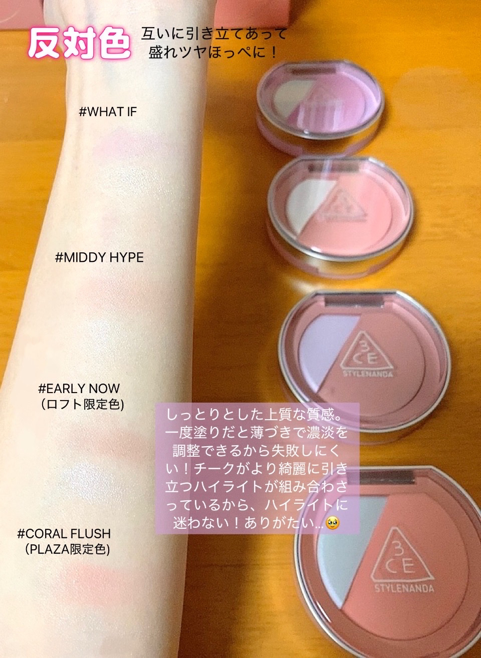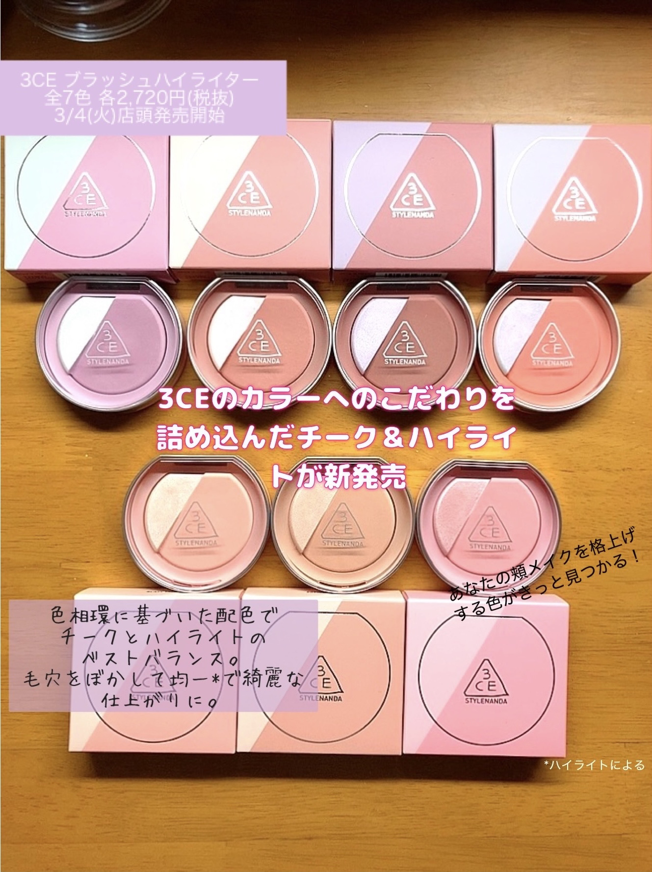 - ãœãŠã«çºã®ã¯ãªãšã€ãã£ãã¡ã€ã¯ã¢ãããã©ã³ãã3CEããããèšç®ãããã«ã©ãŒã³ã³ãããŒã·ã§ã³ã§ãèªç¶ãªè¡è²æãšãã€ãå¶ããããã©ãã·ã¥ã©ã€ã¿ãŒãå š7è²ãç»å Žã2025幎3æ4æ¥ïŒç«ïŒããåºé ã3æ14æ¥ïŒéïŒãããªã³ã©ã€ã³ã·ã§ããã«ãŠçºå£²éå§ããããŸãã â®ãçããã€ã»ã£ãºããšãããããããã¥ã»ã£ãºããæŒåº 3CEãªãã§ã¯ã®ã«ã©ãŒãžã®ãã ãããè©°ã蟌ãã æ°ããŒã¯ïŒãã€ã©ã€ãããã©ãã·ã¥ã©ã€ã¿ãŒãã è²çžç°ã«åºã¥ããçµ¶åŠãªé è²ã§ããã€ã©ã€ããšããŒã¯ã®ãã¹ããã©ã³ã¹ãå®çŸããŸãã ã» ã³ã³ãã©ã¹ãã«ã©ãŒïŒå š4è²ïŒã§ãçããã€ã»ã£ãºãïŒ è²çžç°ã§å察è²ãšãªããã€ã©ã€ããšããŒã¯ãçµã¿åãããããšã§ãäºãã®è²ãåŒãç«ãŠåããè¯ãããªå°è±¡ã«ã éææã®ãããã€ã©ã€ãããè¡è²æããµããããŒã¯ãããäžå±€éç«ãããŸãã ã» ã°ã©ããŒã·ã§ã³ã«ã©ãŒïŒå š3è²ïŒã§ãããããããã¥ã»ã£ãºãïŒ è²çžç°ã§é£ãåãè²ã®ãã€ã©ã€ããšããŒã¯ã¯ãèã«èªç¶ã«æº¶ã蟌ã¿ããŸãã§âå ããçŸäººâã®ãããªããã¥ã©ã«ãªè¡è²ãšãã€ãäžããŸãã