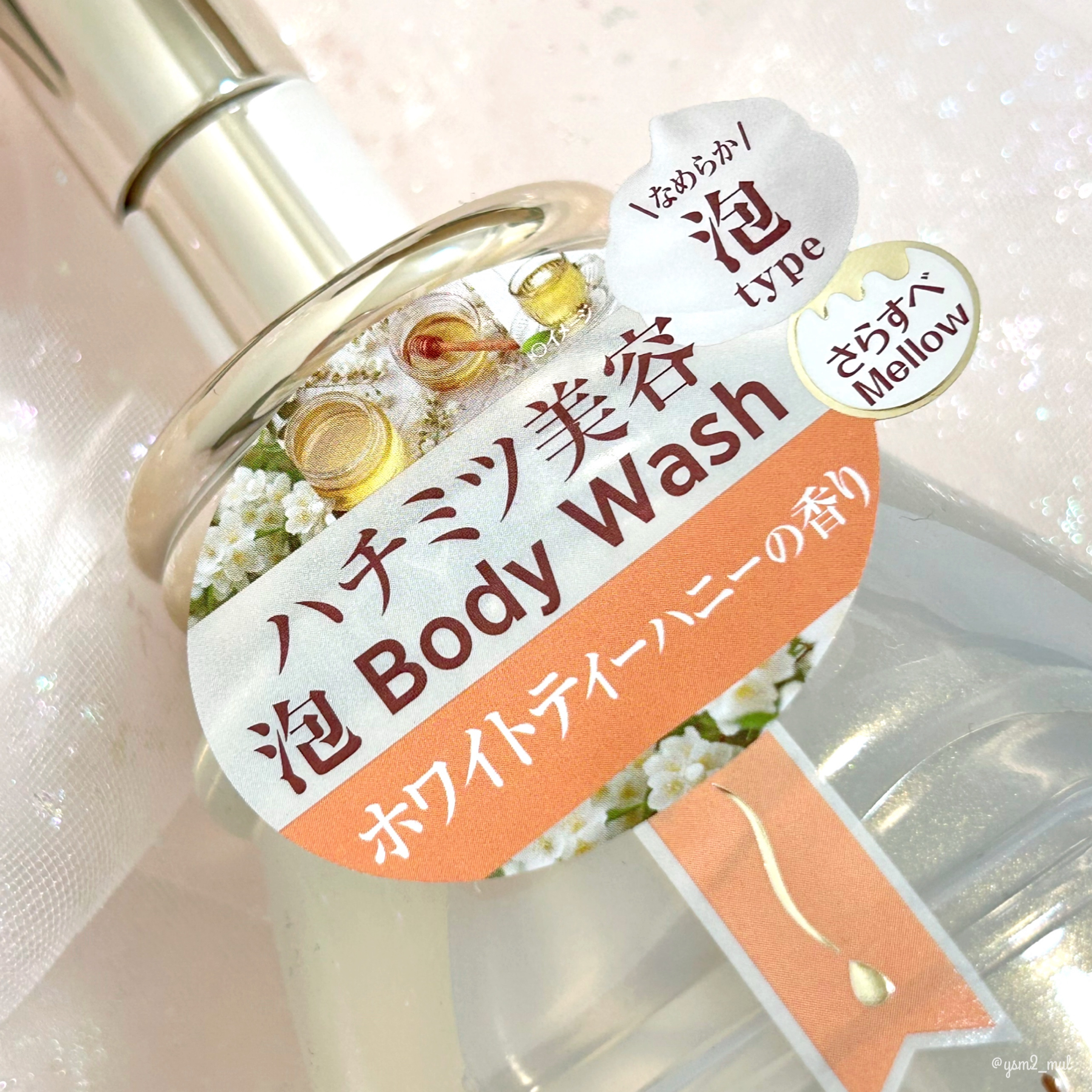 - ハチミツ美容でうるおいを残しながら、 キメ細かくなめらかな泡がやさしくさらすべに洗い上げる泡ボディウォッシュ。 製品の90%以上をハチミツ*1をはじめとして、高保湿ヒアルロン酸*2・アルガンオイル*3などのうるおい成分*4で構成*5し、さらに8つの無添加・フリー処方*6で、お肌のことを考え「低刺激性処方」を追求しました。 爽やかで透明感のあるホワイトティーハニーの香りでバスタイムを至福のひとときへ ▼こんな方におすすめ ○お肌をやさしい使用感で、いたわりながら洗いたい方 ○さらすべな仕上がりが好きな方 ○ホワイトティーの香りが好きな方 サルフェート(ラウレス硫酸Naなど)・鉱物油・アルコール・石油系界面活性剤・ 合成着色料・シリコン・動物実験(製品として)・防腐剤フリー *1 保湿 *2 アセチルヒアルロン酸Na(保湿) *3 アルガニアスピノサ核油(保湿) *4 保湿・整肌成分の総称 *5 基剤を除く、水を含む *6 サルフェート(ラウレス硫酸Naなど)・鉱物油・アルコール・石油系界面活性剤・合成着色料・シリコン・動物実験(製品として)・防腐剤