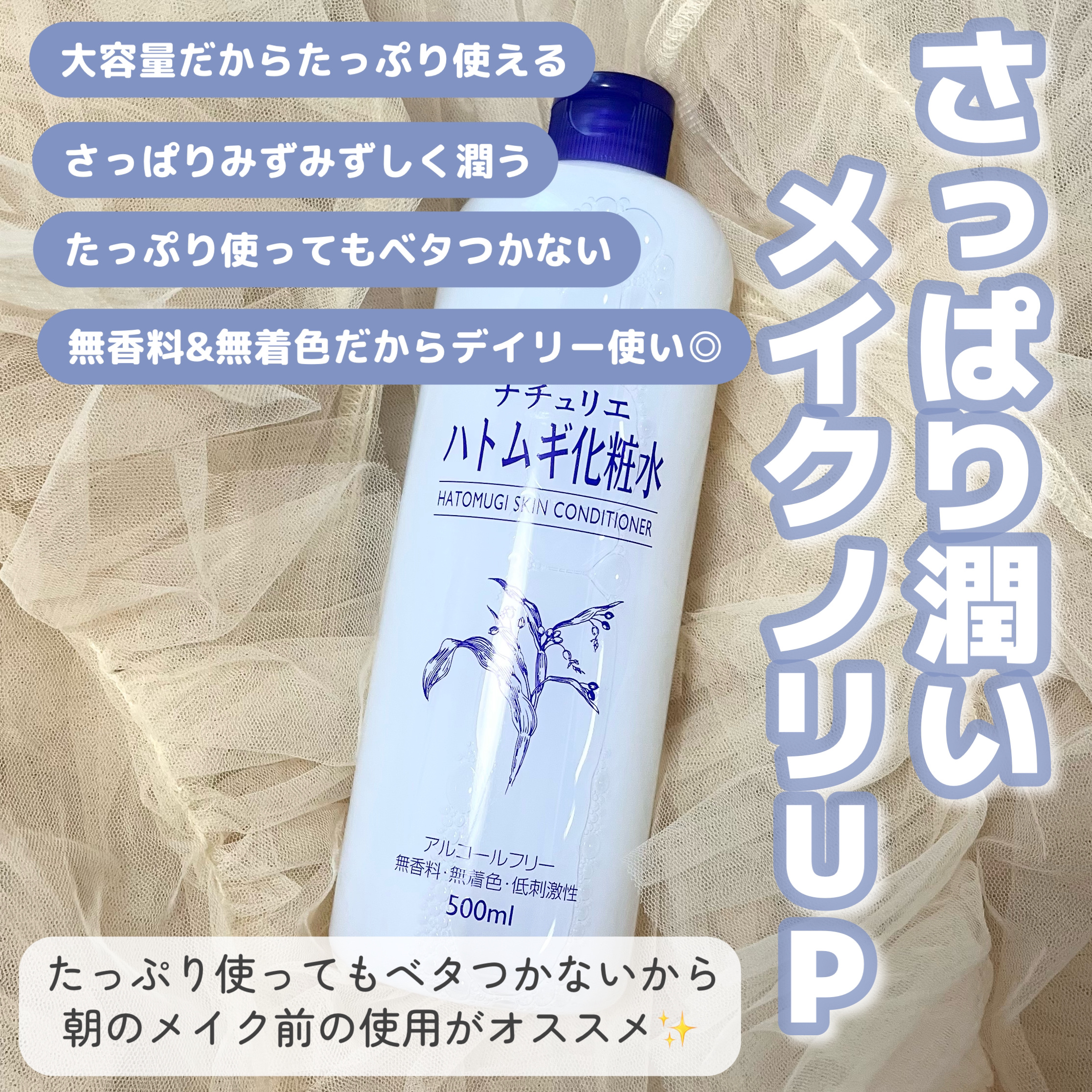 ナチュリエ様から「ハトムギ化粧水」をいただきました。✨商品ポイント✨♡さっぱりみずみずしく潤い、夏は冷蔵庫で冷やして使うのもオススメ🎶♡毎日快適に使いやすい、アルコールフリー・無香料・無着色♡べたつきを避けたい朝のメイク前や、ローションパック...