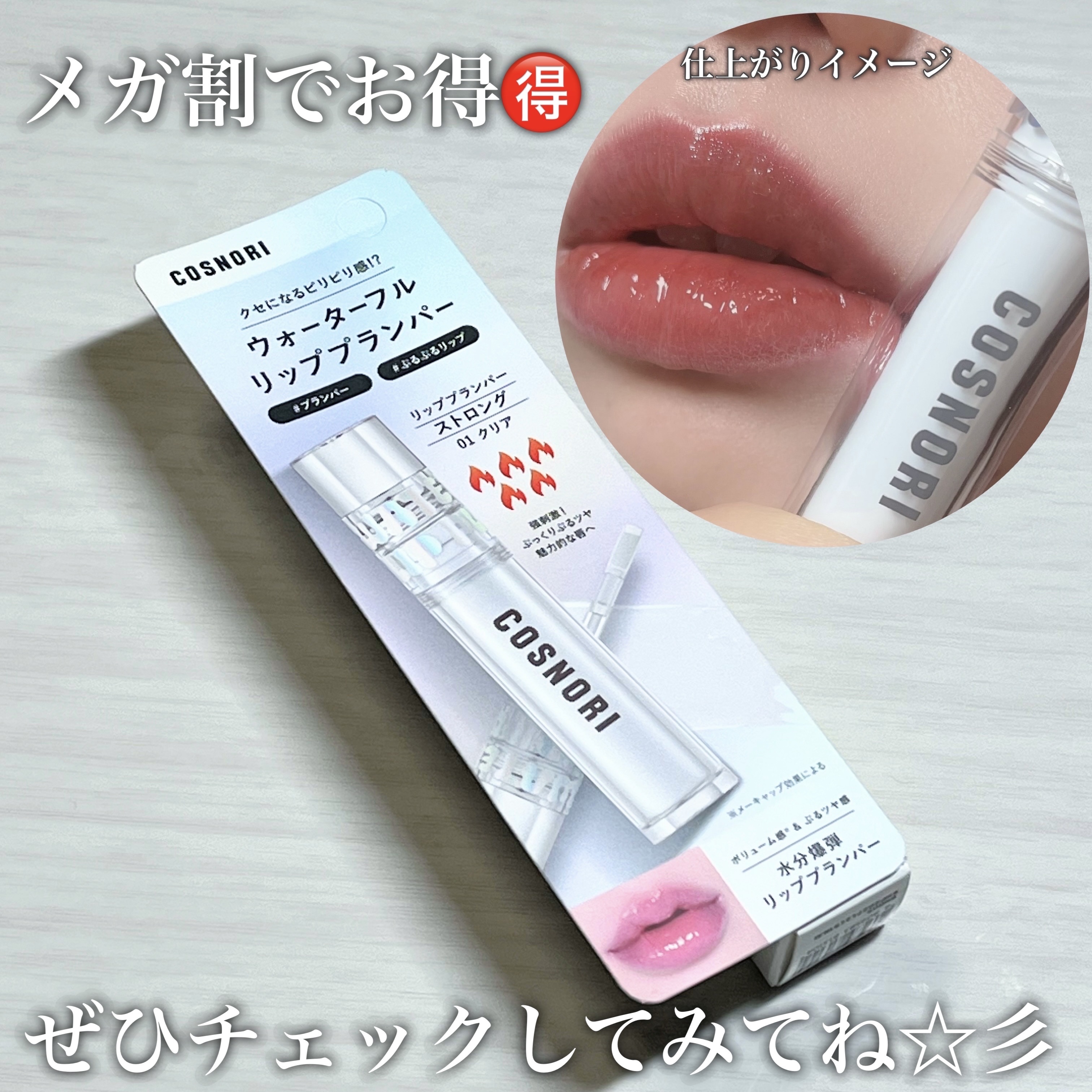 売り切れ続出だった水分プランパー!COSNORIウォーターフルリッププランパーストロング01クリアストロングとのことでこちらは上級者向けのしっかりプランパー。唇に塗ってしばらくするとピリピリジンジンしてきて🌶️血色感のあるうるうるぷっくりな唇...