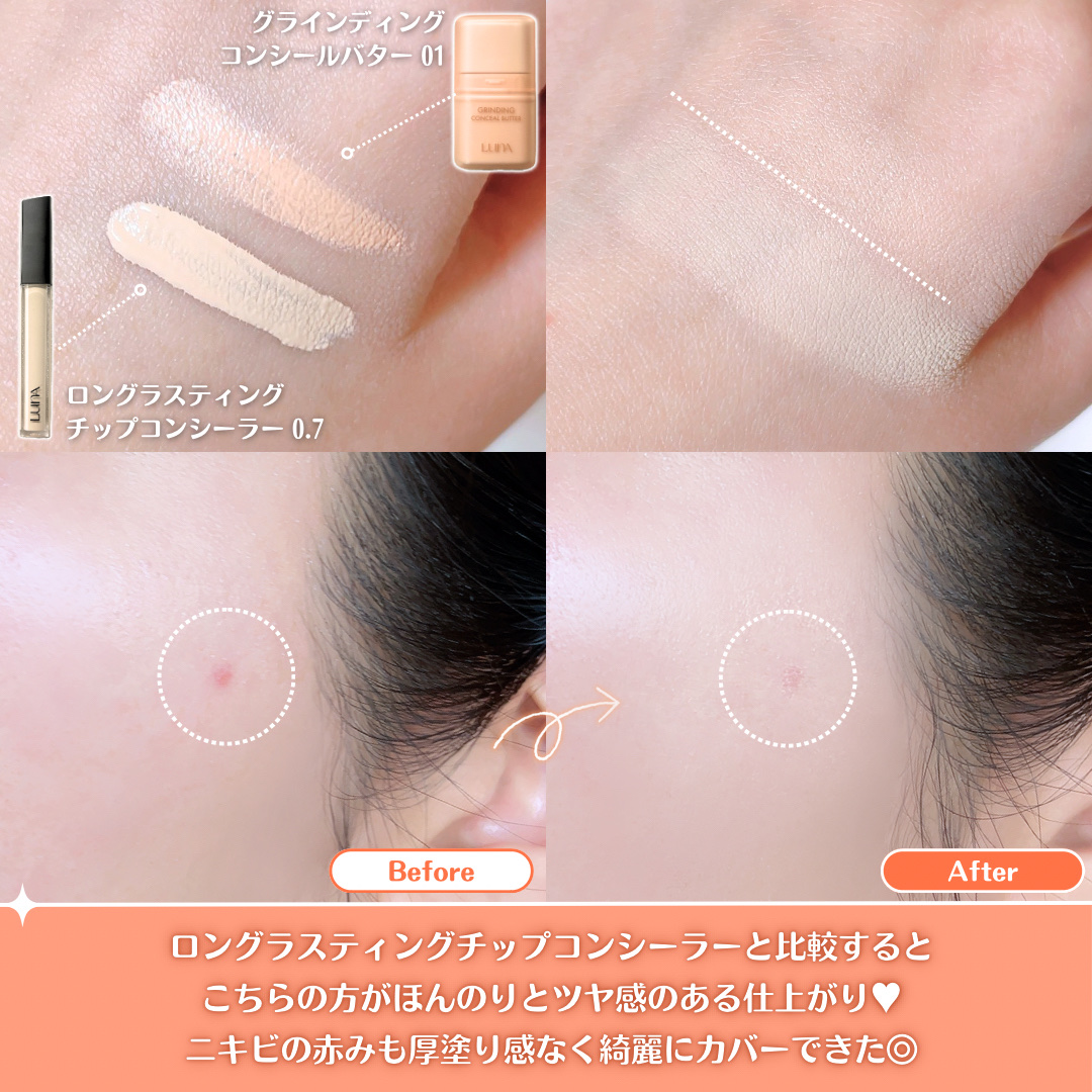 回して削る!NEWコンシーラー登場😶🌫️ 容器を回すとにゅーっと出てきて、好きなだけ削って使える新感覚のコンシーラー。 バターのようにとろけるテクスチャーで、なめらかに密着。柔らかく伸びも良いので、少量で厚塗り感なくカバーしてくれます。 肌トーンやカバーしたい場所に合わせて選べる3色展開。01 SALMON BEIGE サーモンベージュは、クマのカバーにぴったりのカラー。