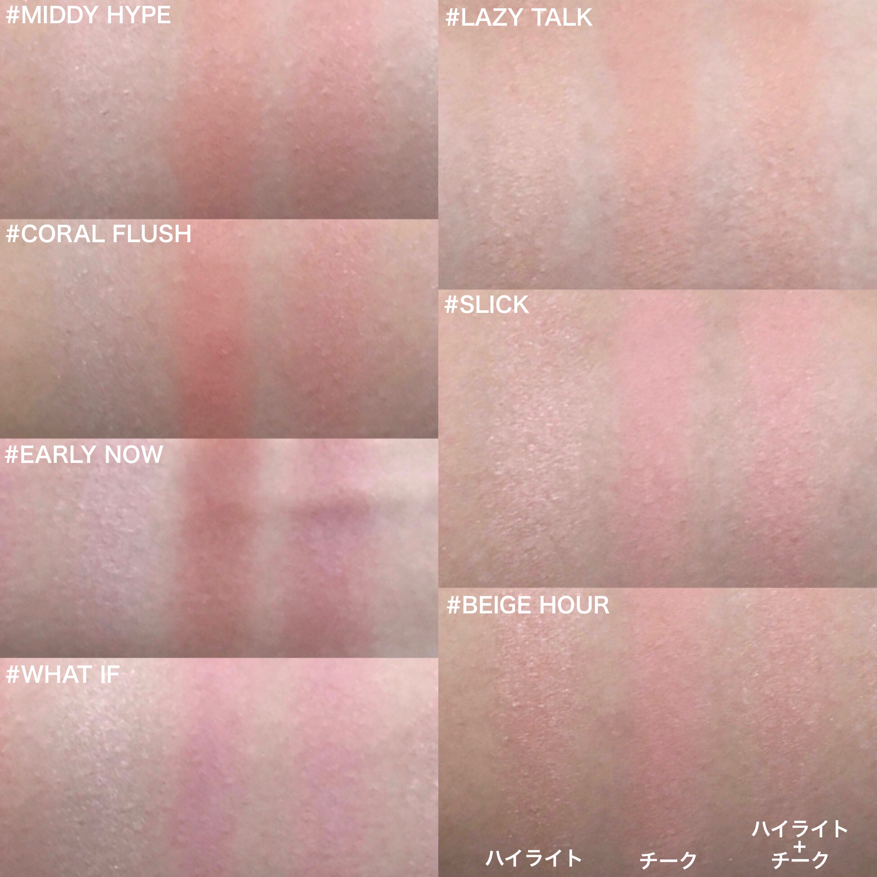 オーロラハイライトとヴェールチークが1つに⠜ 3CEのカラーのこだわりが詰まってるチーク×ハイライトの全色レビュー♡ 色相環に基づいた配色だからチーク×ハイライトのベストバランスを実現✧*。 ふんわり発色のチークと繊細パールのハイライトで毛穴をぼかして ※均一で綺麗な仕上がりに𓂃◌𓈒𓐍