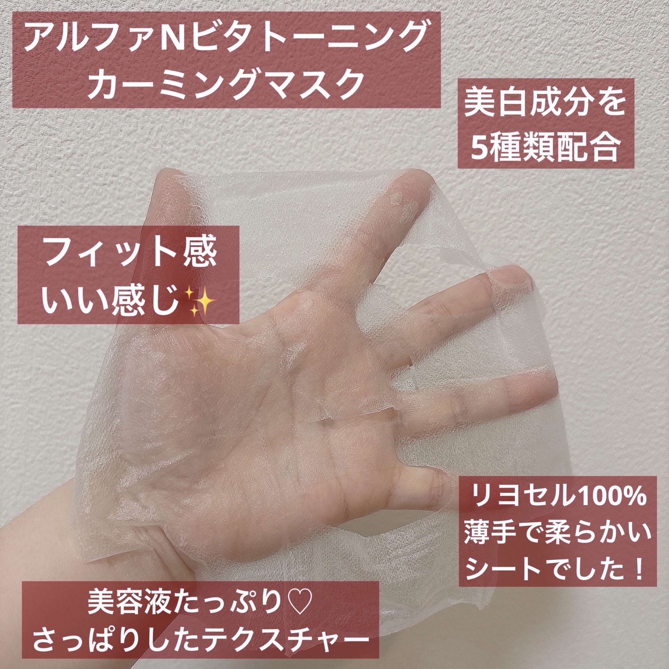 毎日使えるデイリーシートマスク! シートが異なるのが特徴😳 美白成分が配合されたアルファNビタトーニングカーミングマスクを朝に使用しメイクのりを良く❤️ お肌ひんやりもっちりするのにシートの形状エッセンスのテクスチャーが違うだけで使用感が異なる不思議なシートマスクです🥰