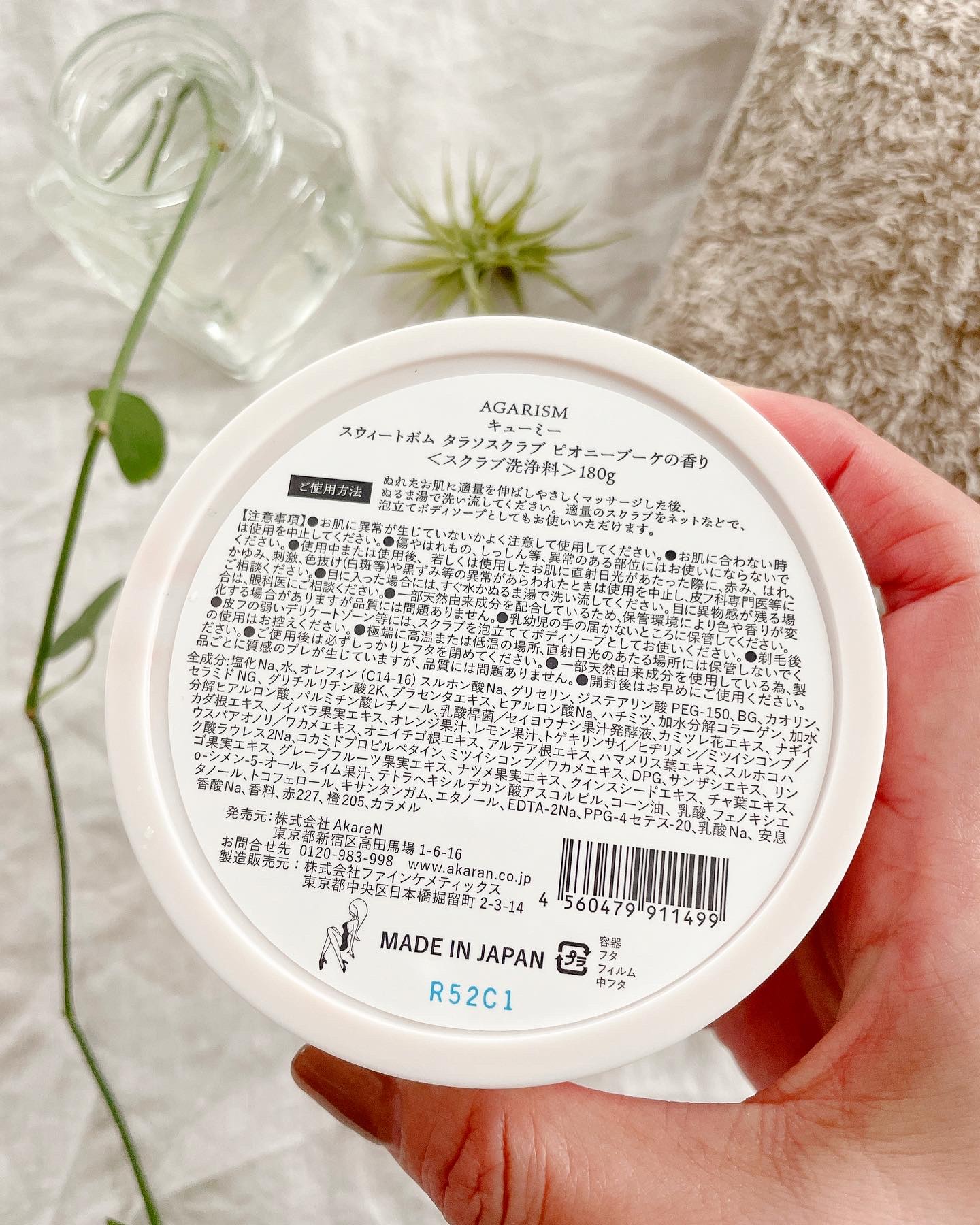 商品詳細情報AGARISM キューミースウィートボムタラソスクラブ ピオニーブーケの香り