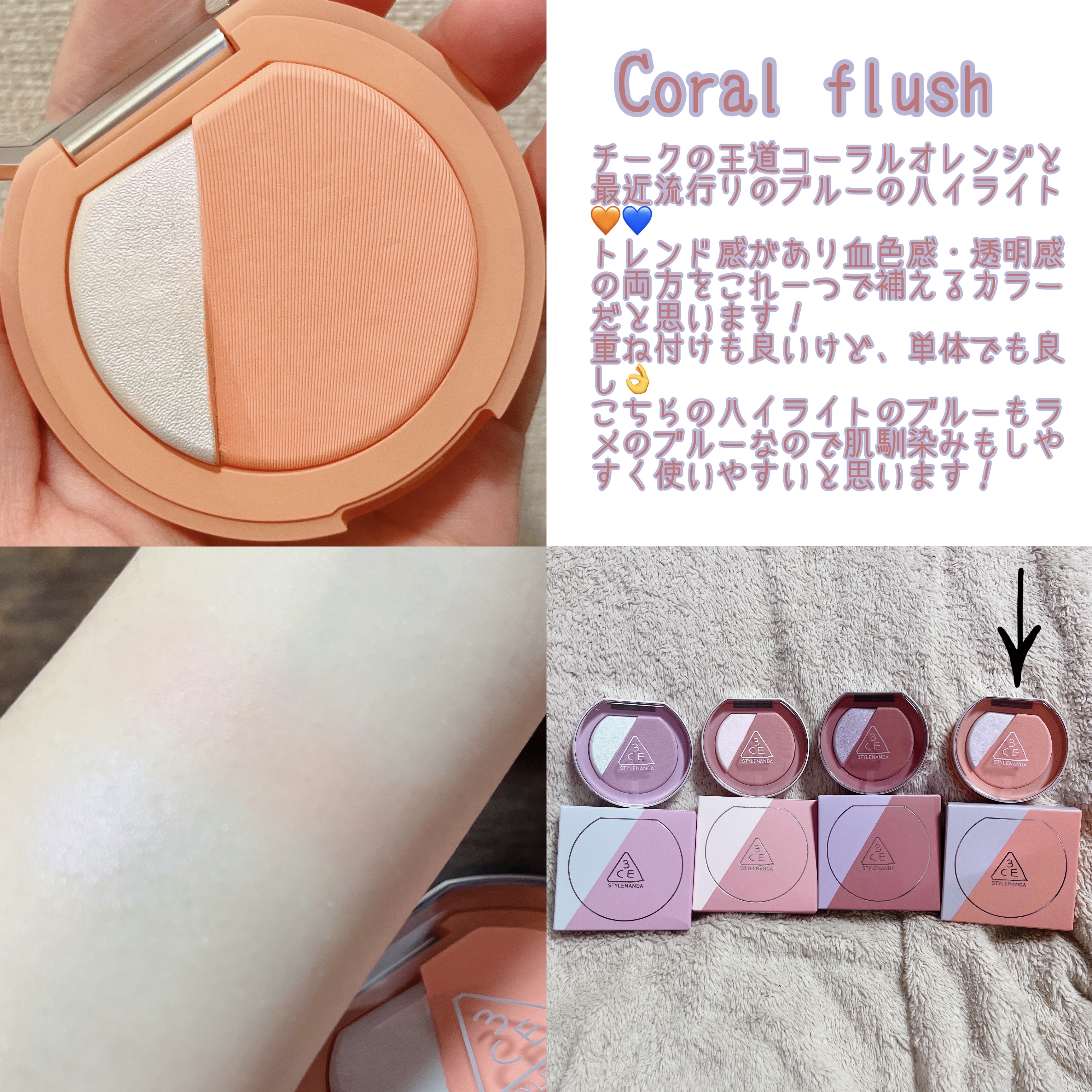 3CEのカラーへのこだわりを詰め込んだ チーク&ハイライトが新発売🫶🏻 反対色で盛れツヤほっぺ コントラストカラー🩷 ✔️ホワットイフ ✔️ミディーハイプ ✔️アーリーナウ ✔️コーラルフラッシュ 薄付きで、ふんわりとした発色♡ 重ね付けもしやすいから好みの濃さにしやすいよ♪