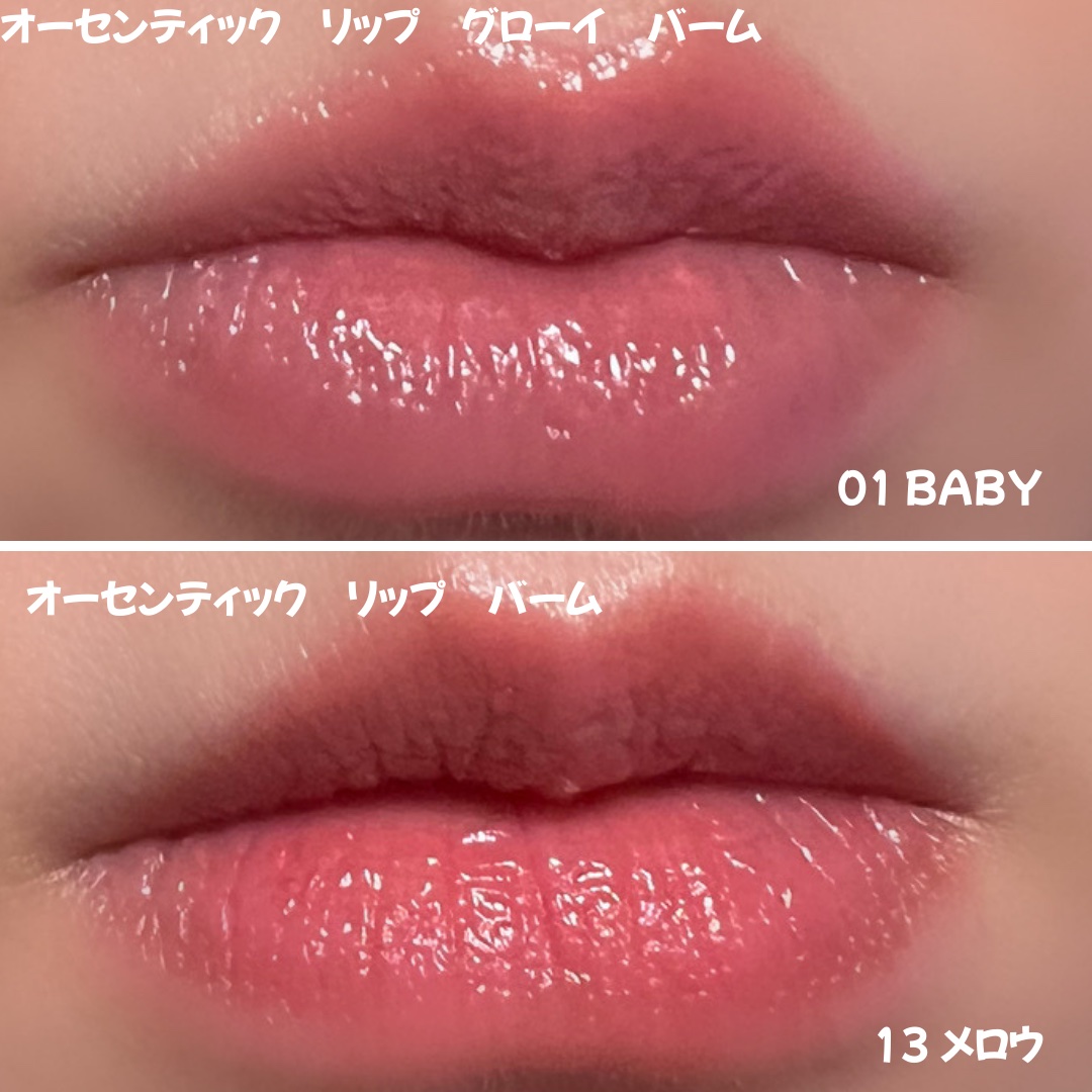 athéのリップバーム2種類は全然違った😍 ✔️ オーセンテックリップバーム(13 メロウ)軽やかにスルスル塗れるのに、べたつかずにしっかり密着! ✔️ オーセンテックリップグローイバーム(01 BABY)リップグロスをそのままスティックにしたみたいな、ツヤツヤぷるん!