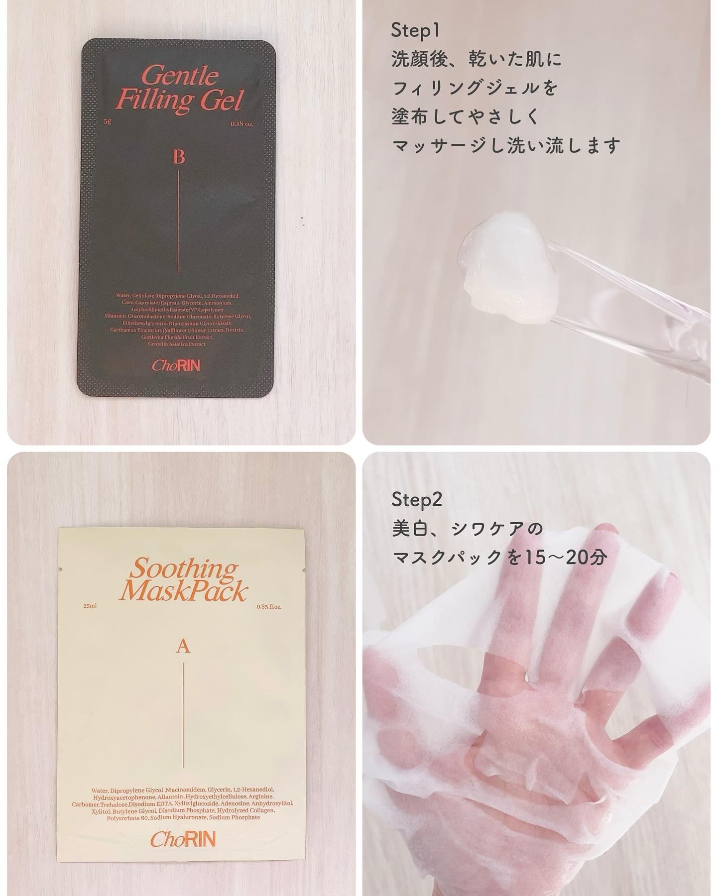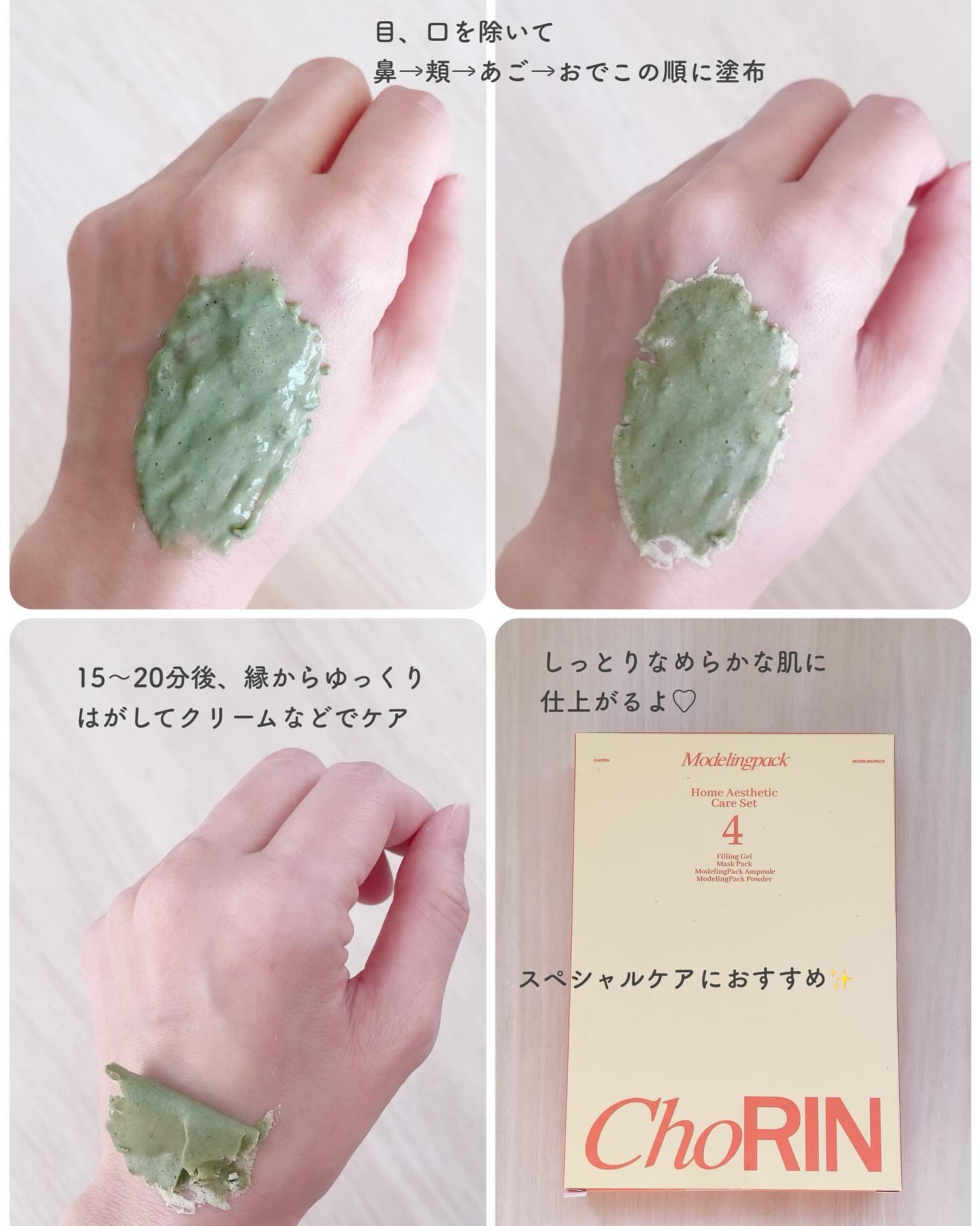 choRINさまからいただきました♡\\自宅で簡単スペシャルホームケア//ピーリング、パック、モデリングマスクの3ステップでお肌に水分・栄養補給⟡.*1箱に全てのセットが入ってるよ‼️まずはピーリング!洗顔後の乾いた肌に。クルクルするとポロポ...