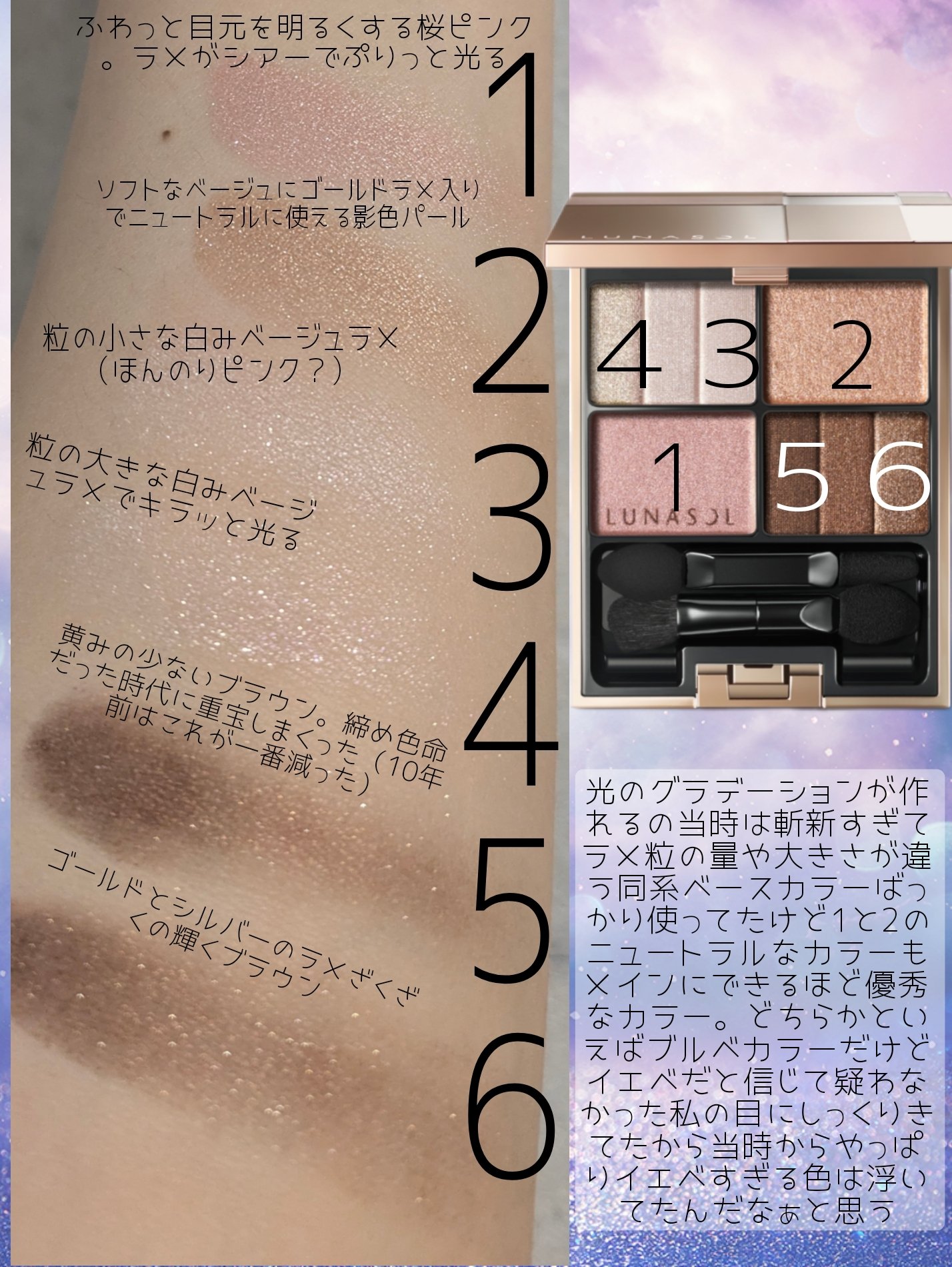 | アイシャドウパレットランキング第7位 | ラメ・パール・ツヤのバランスが天才で、まぶたにうるおいをまとったような上品なきらめき✨ | 詳細を見る | |