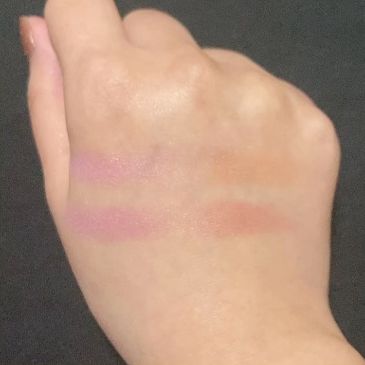 ハイライトが桜色で美しい 透明感と血色感を合わせた絶妙なカラー 自分には単品だと上手く使いこなせなかった (浮いてしまった) 目元に使うと二重幅や涙袋のシワに溜まりやすい 青みが得意な人 パープル系チークがお好きな方 お勧め