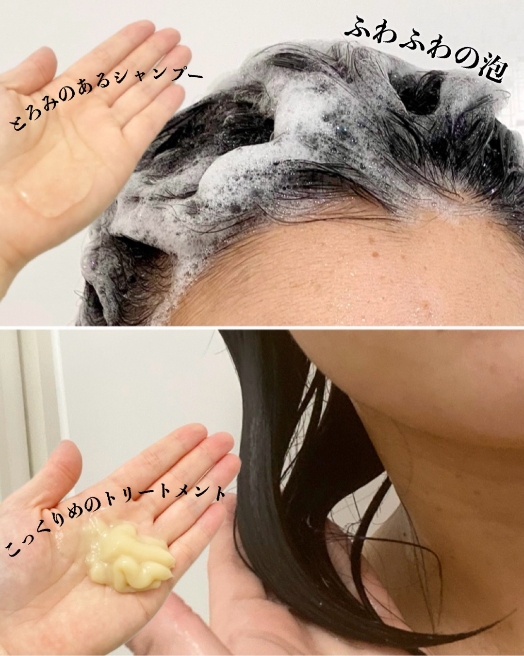 乾燥髪を集中補修! ダメージ毛のことを考えたふわ泡シャンプーと浸透型トリートメント 泡立ちがよく、ふわふわの泡で摩擦少なく洗えるのも嬉しい! 見違えるほど髪質が変わりました😳😳😳😳 まとまるトゥルトゥル髪に✨💕