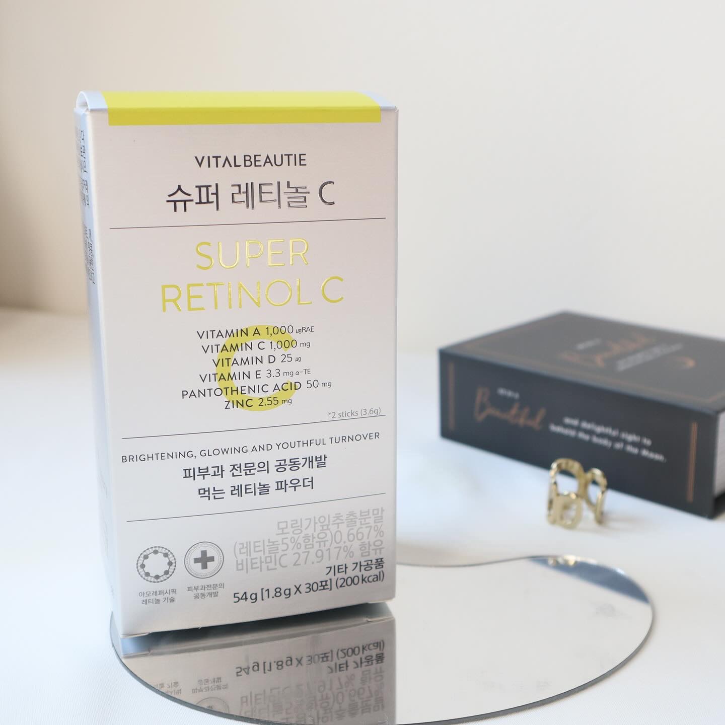 - 食べるタイプのレチノール 1) 専門家のフォーミュラ Flex! - 皮膚科専門医とアモーレパシフィックが共同開発 29年間蓄積したレチノール技術で完成! 食べるレチノールプロテクション技術を適用 (ビタミンA、1000ugRAE配合*) 2) 明るく輝く! - 豊富に含むビタミンC1,000mg含有* - パントテン酸1日栄養成分基準配合* - ビタミンE、ビタミンD、亜鉛 副成分 L-システインとヘスペリジンを配合 3) さわやかなシトラスの味 「ヴィーガンレチノール」 - ヴィーガン認証を取得した毎日摂取できる美味しいレチノール *上記の栄養成分の数値は、2包摂を基準に作成された含量です *お召し上がり方! 1回1~2包を 直接摂取してください