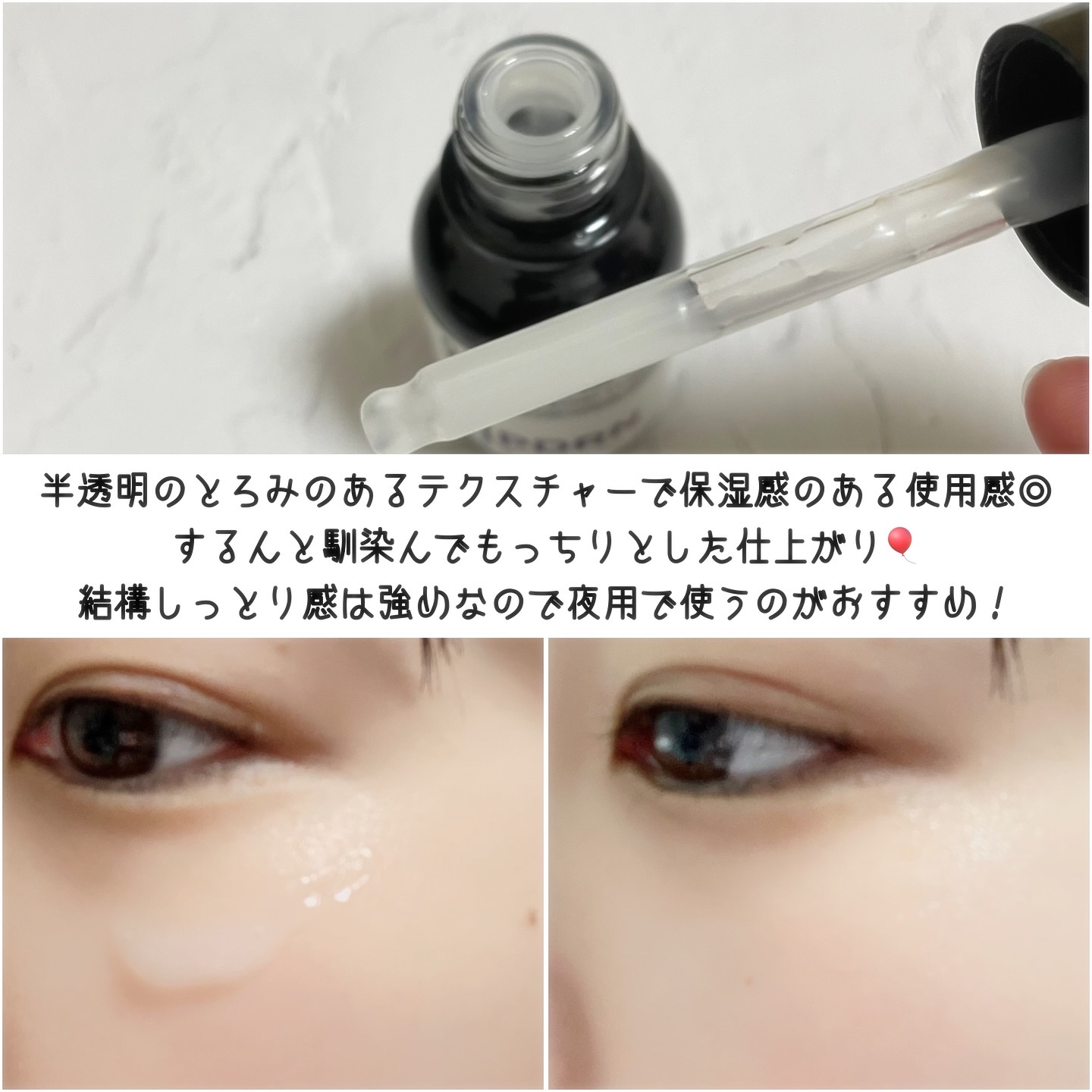 | とろみはあるけどベタつかず、伸ばしていくと肌がツヤっぽくなっていく◎ | 詳細を見る | |||