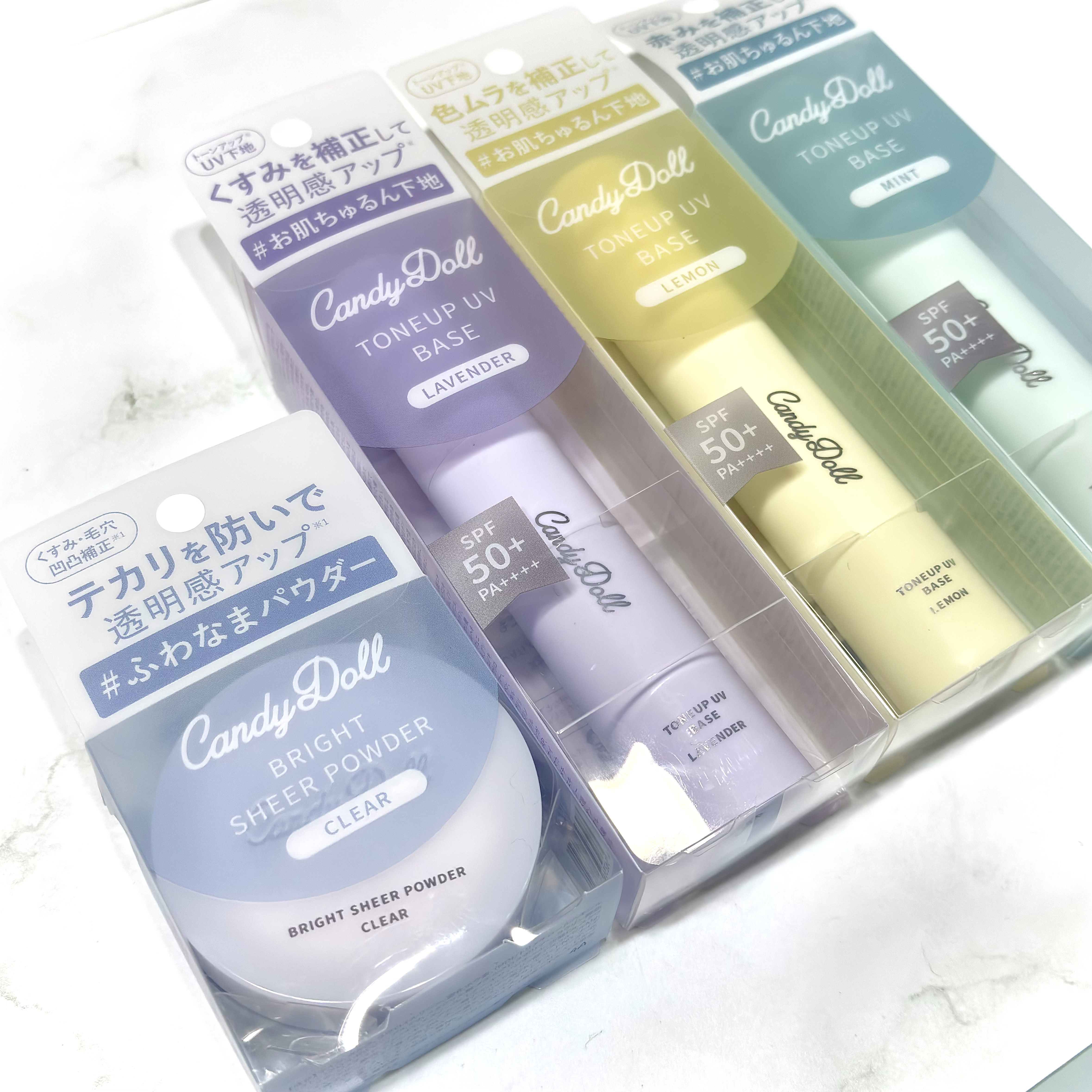 トーンアップUVベースSPF50+PA+++ リニューアルしたUVベース。乳液のようななめらかなテクスチャーで、伸びやすく、しっとしした使い心地。パケが可愛い🫶 陶器白肌が叶うミントカラー くすみ補正 ※ブルー×赤み補正 ※グリーン 頬の赤みや小鼻の赤みが目立たなくなったように感じました。 ブライトシアーパウダー 手のひらサイズで可愛い🫶 ほんのりブルーがかったクリアパウダー。重ね塗りしてもツヤ感が消えない光沢成分(マイカ)、毛穴の凸凹を補正する微粒子パウダー配合だそう!