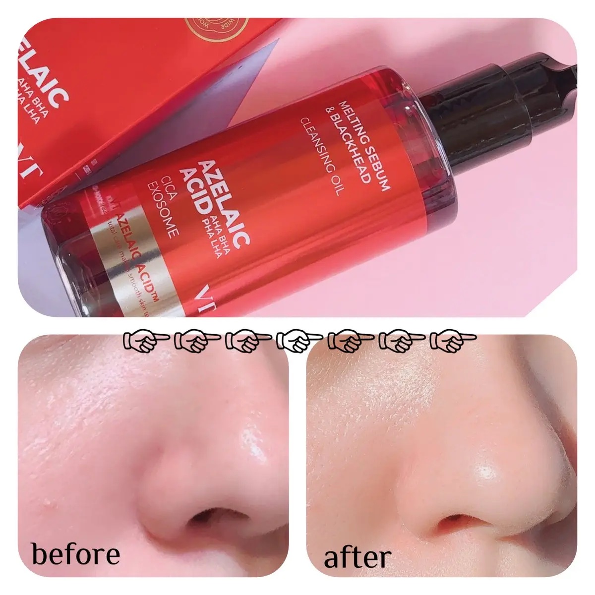 99%高純度アゼライン酸で、ニキビ、毛穴、皮脂、トラブル、ブラックヘッドケア+鎮静ケア 洗浄力+毛穴・皮脂ケア+ニキビ予防を同時に叶えるアゼライン酸クレンジングオイル 液がヒタヒタで、保湿してくれました😊 ザラつき、ゴワつきもなくなり、さっぱりした使い心地でした😊