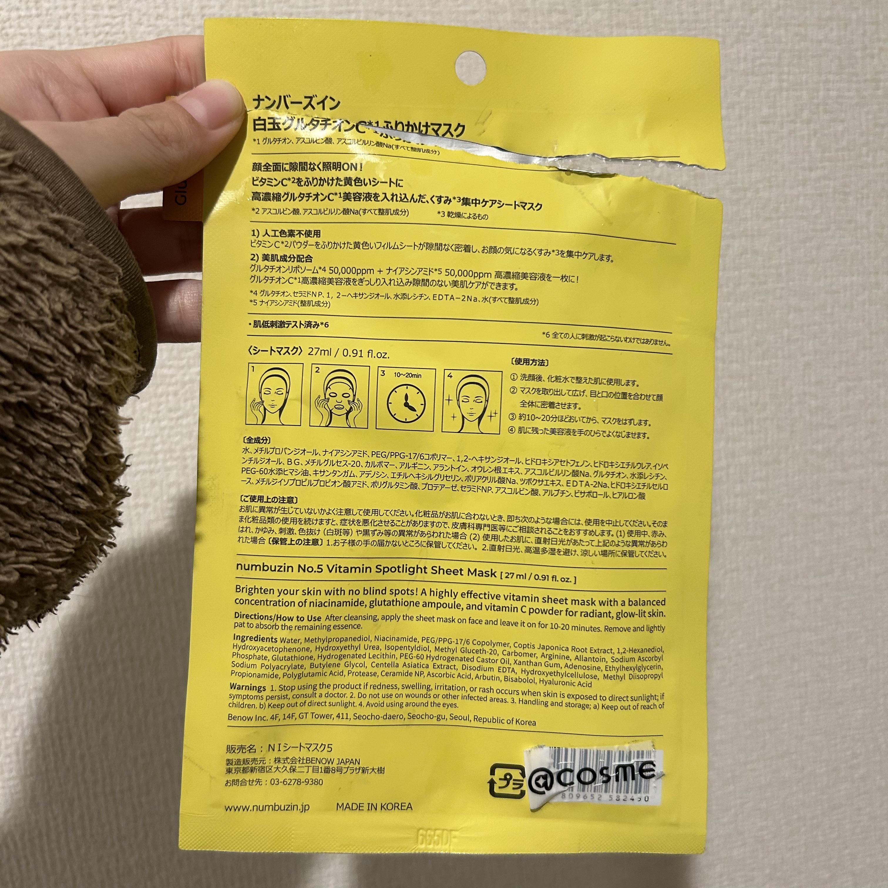 商品詳細情報numbuzin 5番 白玉グルタチオンCふりかけマスク