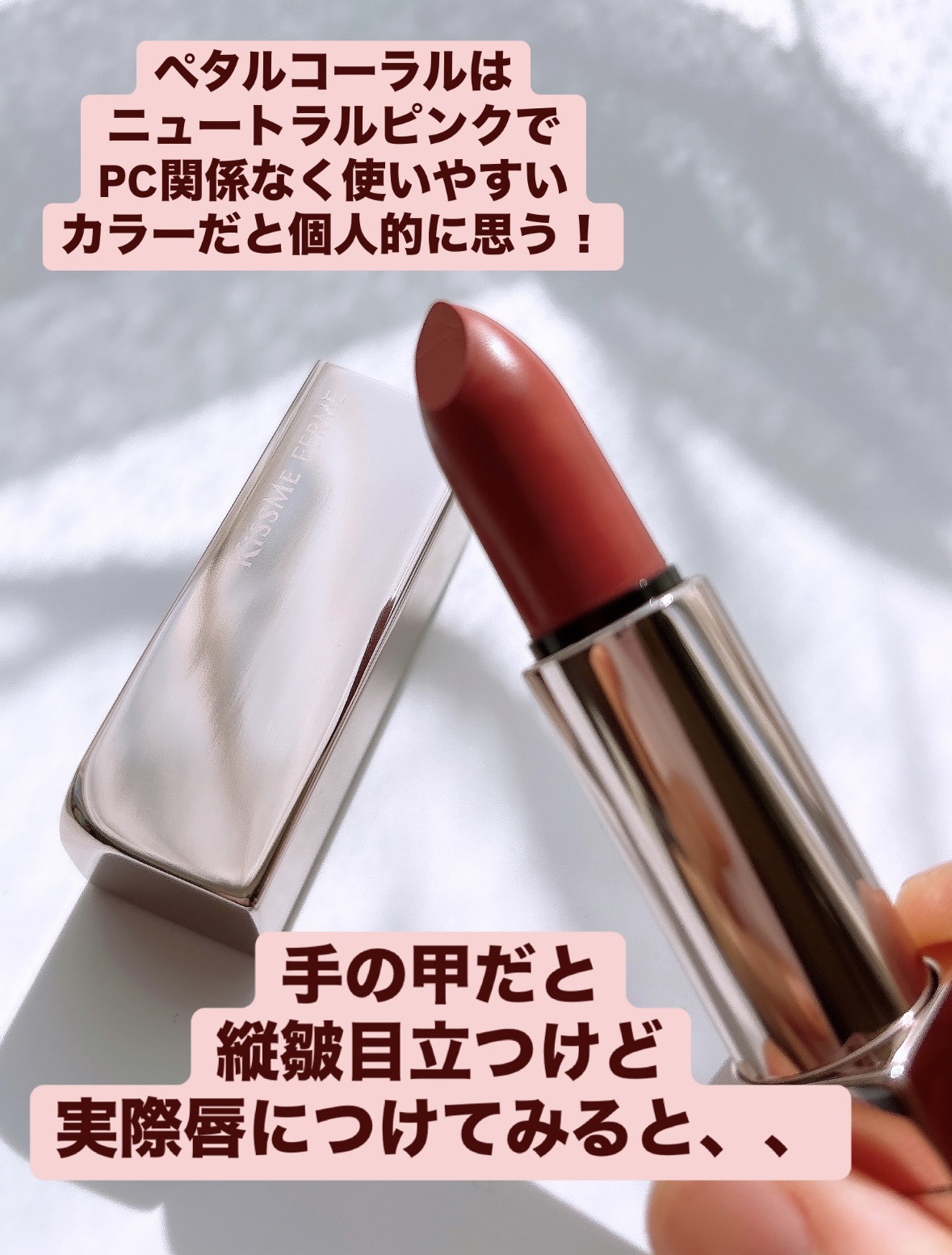 キスミーフェルムさまからいただきました🎁☑︎キスミーフェルム トリコタッチ02ペタルコーラル唇を「とりこ」にするなめらかタッチのルージュ💋そのままするする塗れて発色も◎🙌ツヤ感もありながら色持ちもいい🥰乾燥しずらくて縦じわも目立たない🌿つるん...