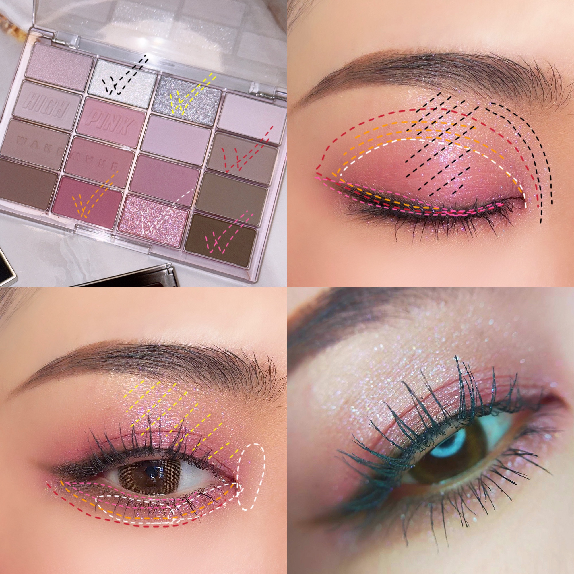 アイシーなピンクと水色のヘイローにしてみたよ🩷🩵やっぱりラメが可愛いパレット🥹✨✨ マットでベースを作ってから、同系色のラメを乗せたヘイローで、下まぶたは馴染みの良いようにベージュとピンクラメにシンプルに❣️ 雪の季節にやりたいメイクが出来たかな🤭☃❄