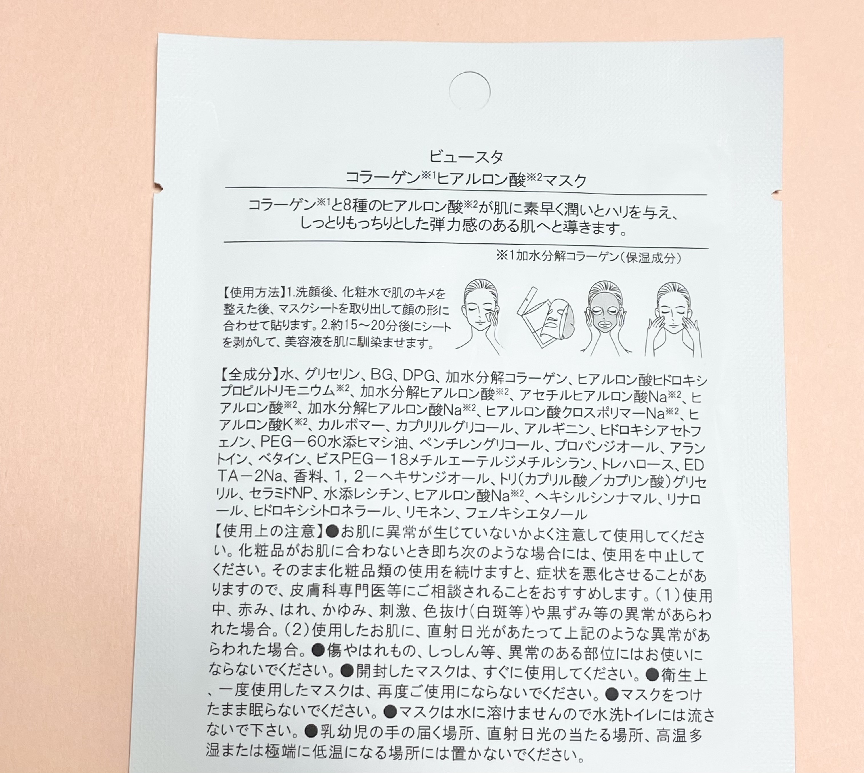 商品詳細情報BEAUSTA ビュースタ デュアルフォーミュラ コラーゲン × ヒアルロン酸マスク