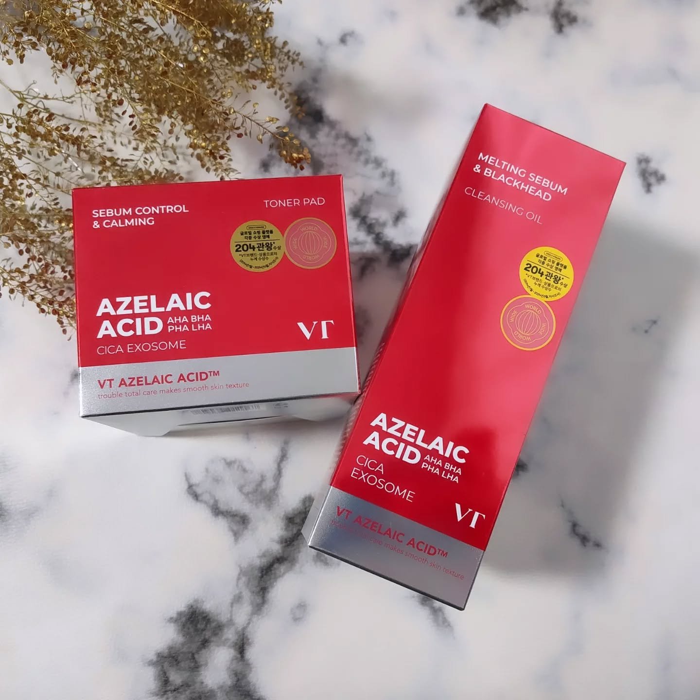 W洗顔不要! VTのアゼライン酸から新登場した最強の自信作🙆♀️ メイクまでしっかり落とせるアゼライン酸クレンジングオイル 高純度99%アゼライン酸を配合し、二キビの原因となる毛穴の中の皮脂を調節☝️ 毛穴詰まりや、コメドにもしっかりアプローチ✨️ 角質・ニキビケアに抜群のAHA,BHAも配合! 1枚で肌トラブル0のなめらか肌に♡