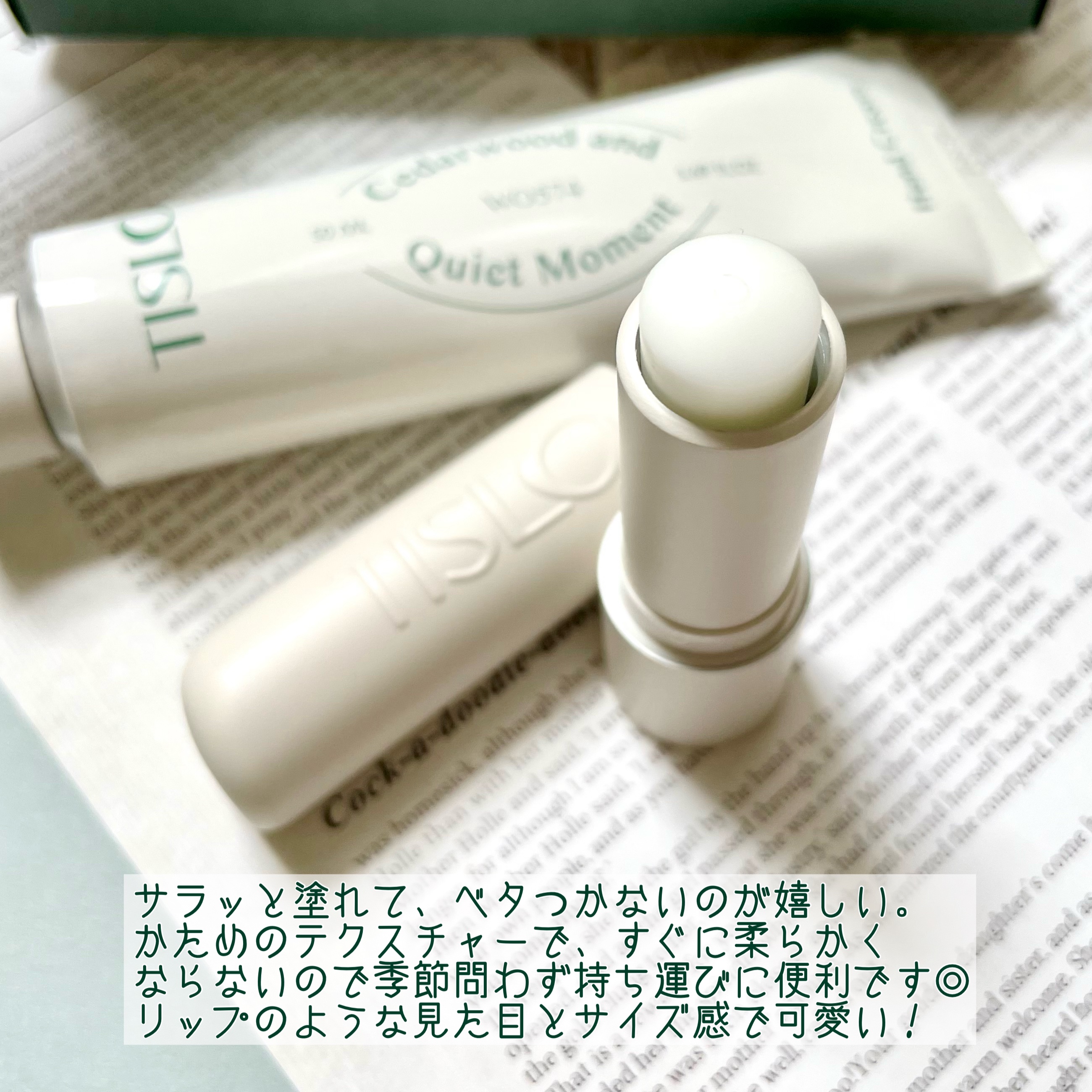 TISLOはボディケアとハンドケア製品を取り扱う韓国のウェアラブルパフュームブランド。 シダーウッドの奥深い木の香りに、静かな森を連想させるウッディの香りのハンドクリーム。外箱も、チューブもおしゃれなデザイン。 シダーウッドの深い木の香りにやわらかいムスクの香りが加わり、静かな森を思わせるウッディの香りのパフュームスティック。