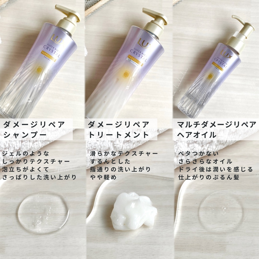 æ°ã«ãªã£ãŠäœ¿ã£ãŠã¿ãããšæã£ãŠããLUXïŒã©ãã¯ã¹ïŒã¹ãŒããŒãªããã¯ãªã¹ã¿ã«ãã«ããã¡ãŒãžãªãã¢ã·ãªãŒãºã®ã·ã£ã³ããŒã»ããªãŒãã¡ã³ãã»ãã¢ãªã€ã«ãã詊ããããŠããã ããã®ã§ç޹ä»ããŸãðã·ãªãŒãºã®ç¹åŸŽâ¡7倧ãã¡ãŒãžïŒUVã»ç±ã»ä¹Ÿç¥ã»ããŒãã»ããª...