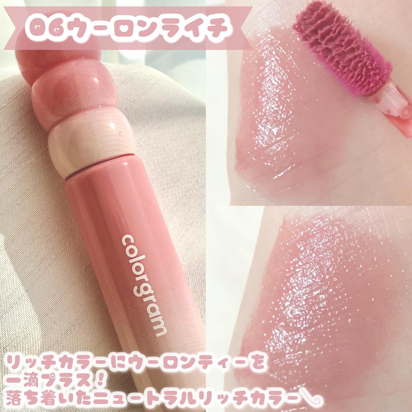 あのタンフルティントで有名なcolorgramから新ティント登場!8色展開でメガ割初日に発売されたよ~🌸 まるで唇にスキンケアをしたような良い塗り心地が魅力のやさしくフィット 濡れ感のある唇がいい感じだよ🥹💋✨