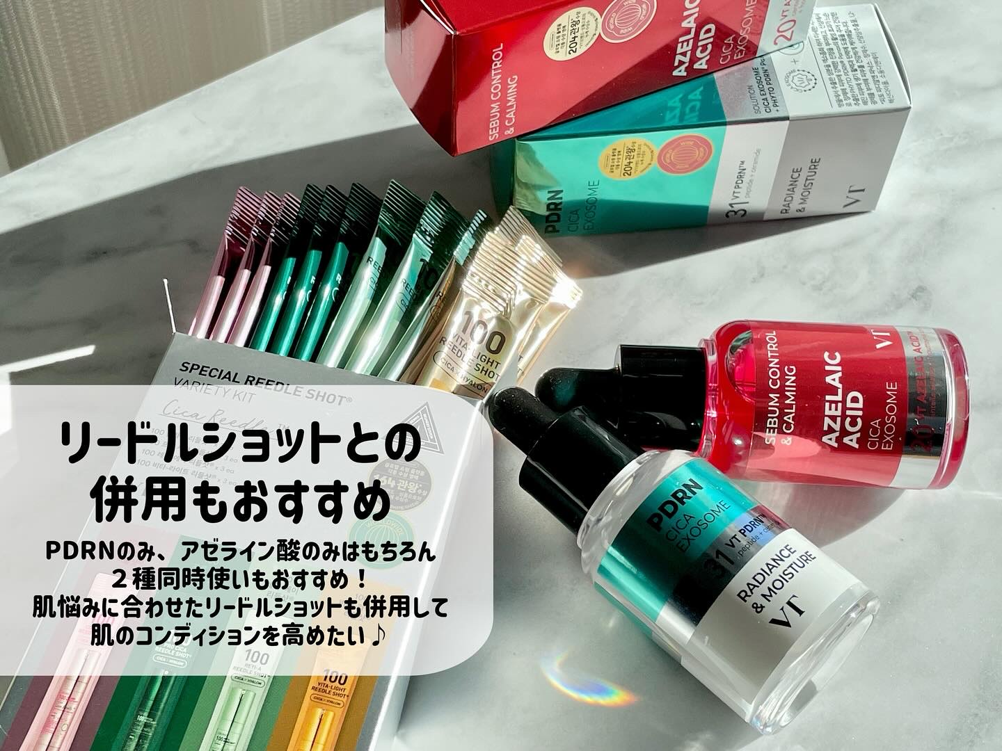 #PR #VT VTさんから商品提供いただきましたアゼライン酸アンプルとPDRNアンプルの、紅白アンプル!アゼライン酸はやや赤みがかったなめらかなテクスチャー。軽やかで肌馴染みもいいよ。刺激感があるかな?って心配したけどマイルドな使い心地で気...