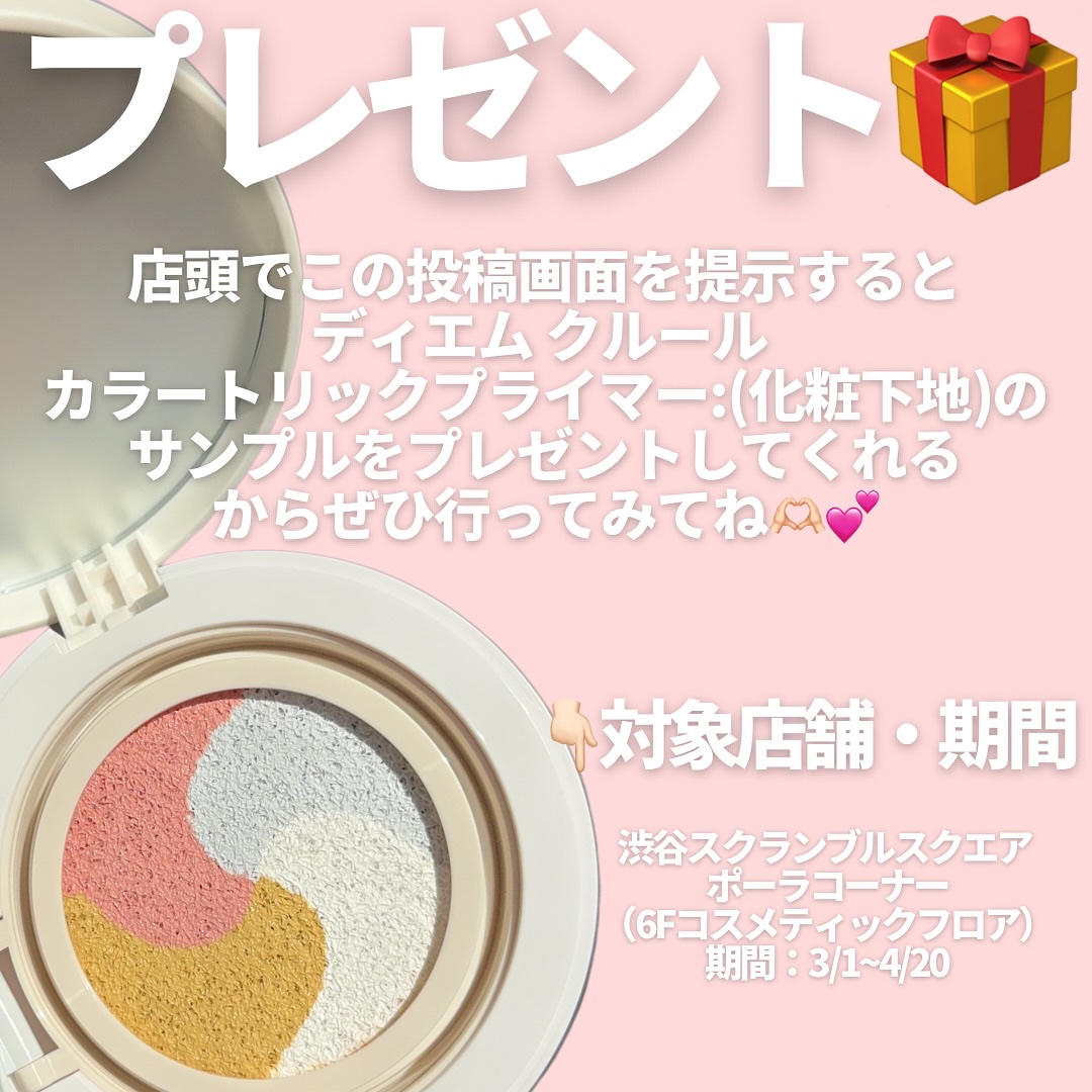 カラフルなファンデーション! ポーラのメークブランド「ディエム クルール」から4色が重なる『虹色シアーファンデ』 “カラートリックマルチクッションファンデーション”が新発売👏🏻 ̖́- 色ムラを自然にカバーして透明感のある仕上がりになるんだそう✨ ピンク・イエロー・ブルー・ホワイトの4色を均一に乗せてファンデとして使うことも、色の取り方を変えてチークやハイライトにもマルチに使えるからすごく便利👀♡ 化粧下地、コントロールカラー要らずで一気に肌色補正(*)ができちゃうからすごいですよね〜✨