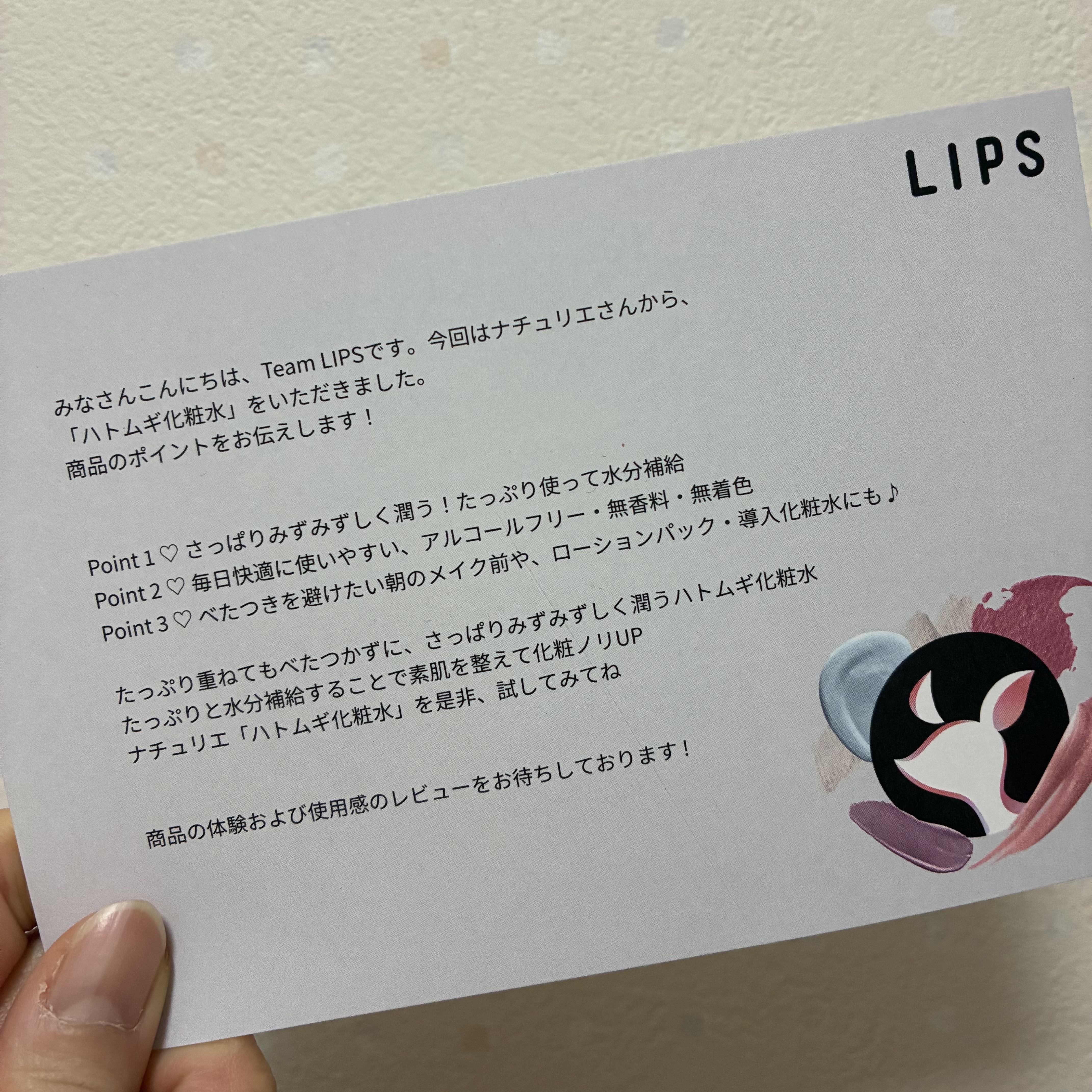 - 肌にうるおいを与えてスキンコンディションを整える、天然保湿成分ハトムギエキス配合の化粧水です。 みずみずしく浸透力に優れた処方なので、重ねるほどぐんぐん肌になじみ、角質層を水分で満たします。 たっぷり肌に重ねづけしてもべたつかないさっぱりした使用感なので、スキンケアのはじめにたっぷり使ってください。 肌がひんやりしてきたら十分に水分がなじんだサインです。 ■基本は化粧水として スキンケアのはじめにたっぷり使ってください。 500円玉大の量を3回重ねづけするのが目安です。 肌がひんやりしてきたら十分に水分がなじんだサインです。 ■ローションパックでさらにうるおい コットンやフェイスマスクにたっぷり含ませて約3分間パックすると、角質水分量がさらに高まります。 ■プレ化粧水として 洗顔後すぐにつけることで、その後につけるスキンケアのなじみをよくします。※角質層まで ■ボディにも べたつかないので、毎日の入浴後や日差しを浴びた後などのボディのスキンケアにもおすすめです。