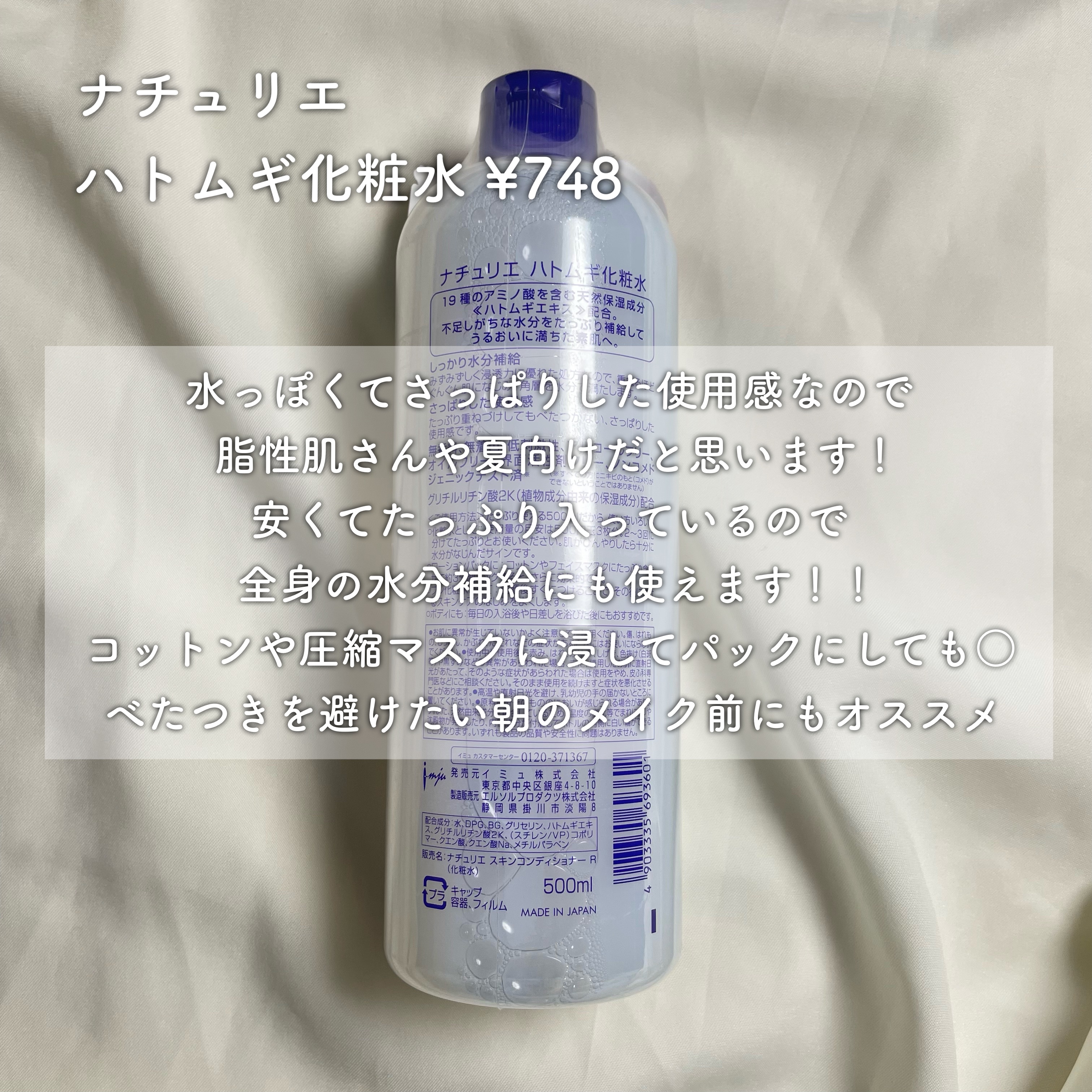 ナチュリエハトムギ化粧水通常サイズ500ml¥748✂〈特徴〉①さっぱりみずみずしく潤う!たっぷり使って水分補給②毎日快適に使いやすい、アルコールフリー・無香料・無着色③べたつきを避けたい朝のメイク前や、ローションパック・導入化粧水にも!朝に...