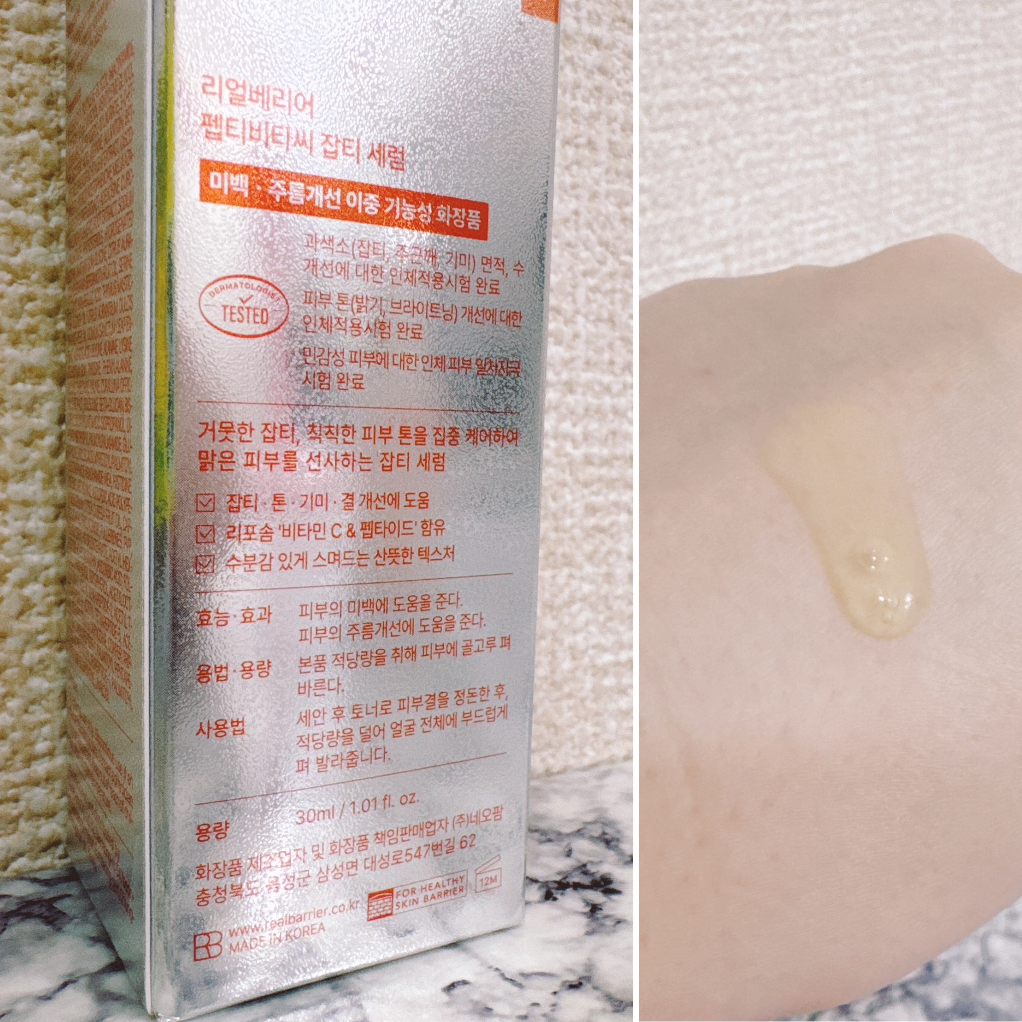 RealbarrierペプチビタCブレミッシュセラム30mlスキンバリア専門ブランドRealbarrierが、新しいエイジングケアシリーズを発売!リポソームビタミンC、ペプチド、ナイアシンアミド、ビタミンC誘導体、グルタチオンが肌のトーン、シ...