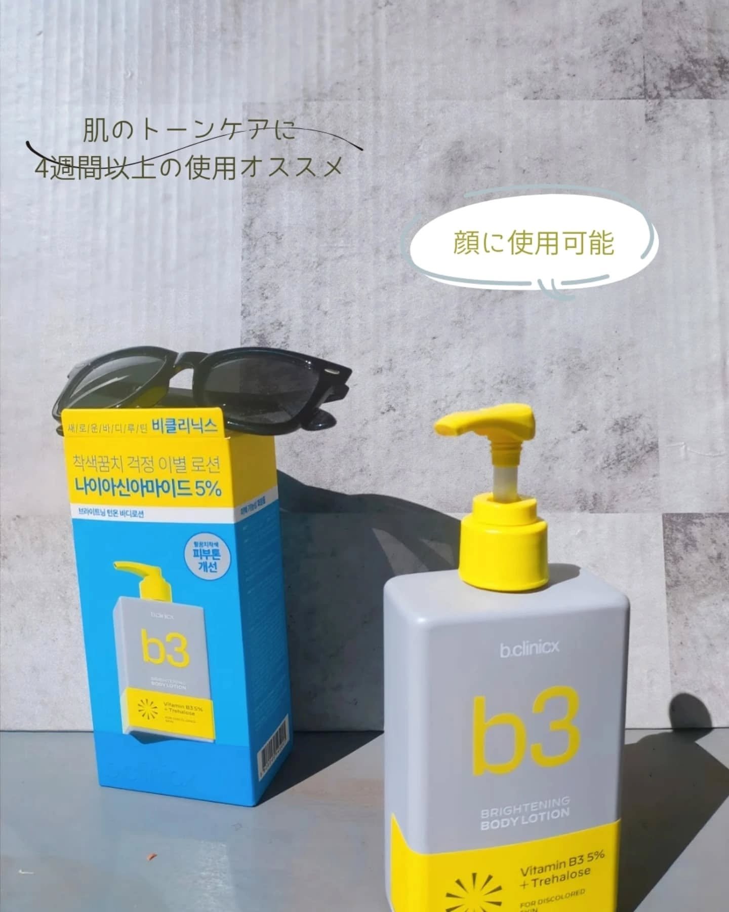 提供┆LGBEAUTY様⌇b.clinicxナイアシンアミド5%ボディローション美白・抗酸化成分で有名なナイアシンアミドを5%も配合したボディローション🌼顔だけでなく体全体のスローエイジングケアが可能に💛黄色の軽い水分クリームで伸びが良くベ...