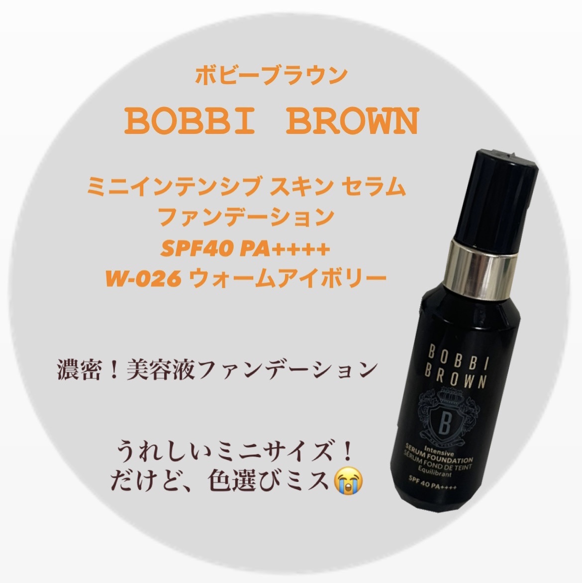 BOBBIBROWNインテンシブセラムファンデーションW-026ウォームアイボリー美容液ファンデだから軽くてツヤツヤなのをイメージしてたけど、良くも悪くも普通のファンデーションだった思ったよりカバー力が高いのは良かったけど、ツヤがそこまで無く...