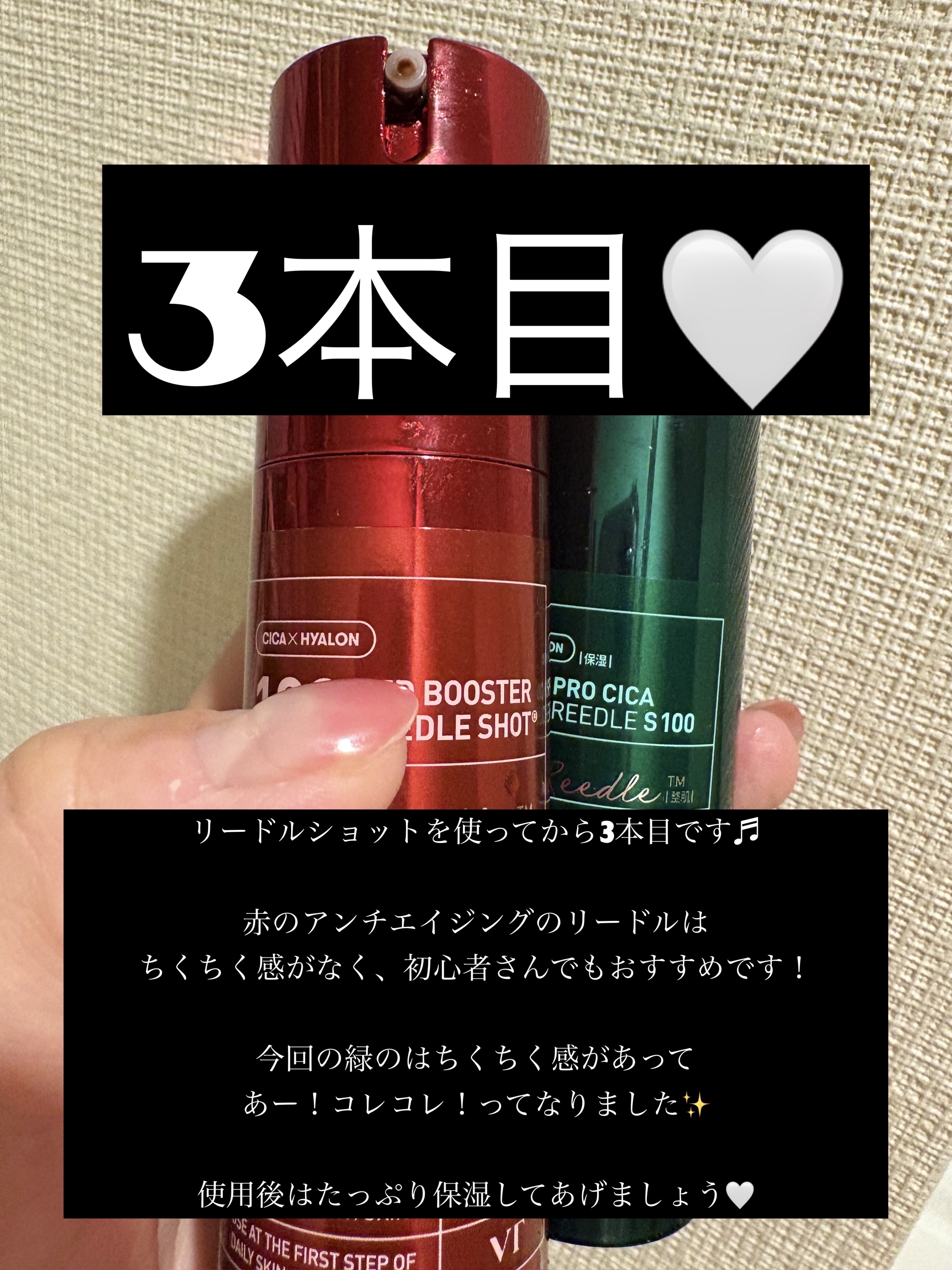 大人気のリードルショット100を4種もお試しできちゃう最高すぎるセットです🥹 個包装なので旅行などの持ち運び用にもぴったり💫 コラーゲン成分配合で肌にもっちりとした弾力を与えてくれる効果が期待できます👏 3包しか使っていませんが、使用前よりお肌にハリが出てきたように感じました😳 ビタミンC/B3/E配合で、パサつきくすんで見えるお肌を光彩感溢れるツヤ肌に導いてくれます🙌 薄いオレンジ色をしたジェル状のテクスチャーで、お肌にスッと馴染んで使いやすかったです🪄