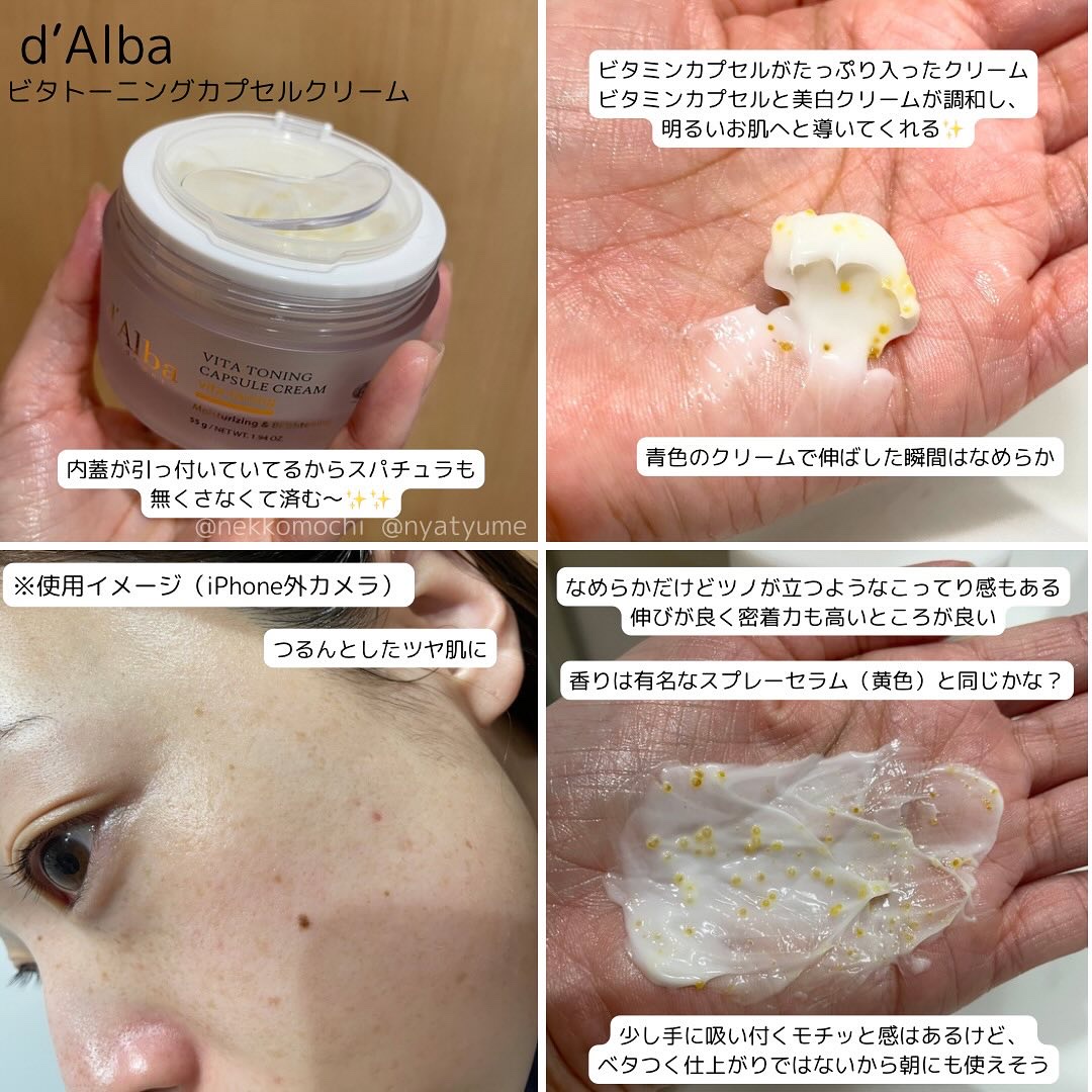 ▶︎d'Alba#PR#ダルバ✴︎ビタトーニングカプセルクリーム金色のつぶつぶビタミンカプセルとホワイトクリームが調和して、明るい肌を目指せるクリームをご紹介💛シーバックソーンウォーター53%&ビタミンC&グルタチオンリポソーム配合で、強力な...