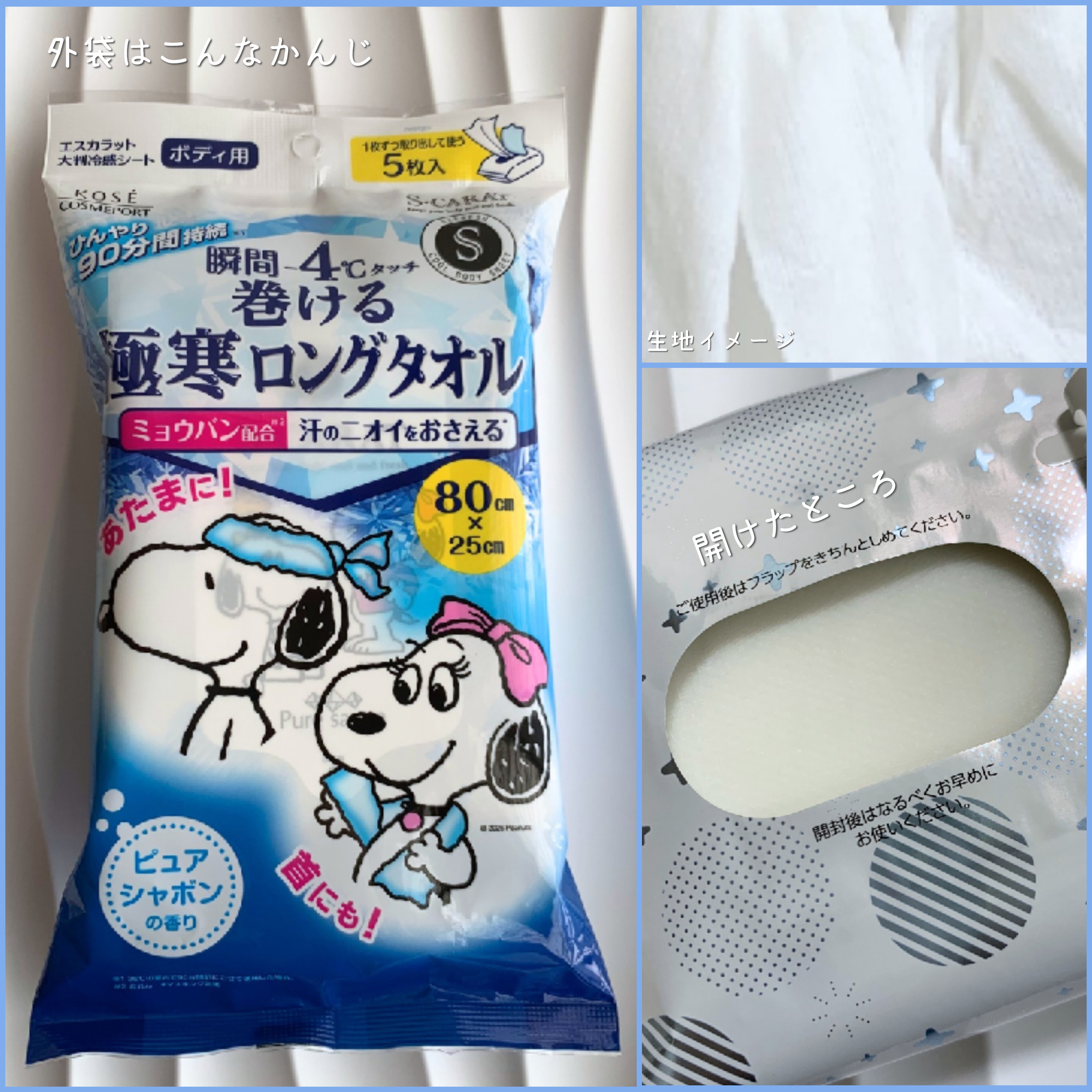 - 瞬間ー4℃タッチ!ひんやりが90分間*持続する極寒ロングタオル。 フェイスタオル級の超大判ロングサイズで、首や頭に巻いて使えるシートです。 ピュアシャボンの香り。 *26℃の室内で90分間肌にのせて使用した場合