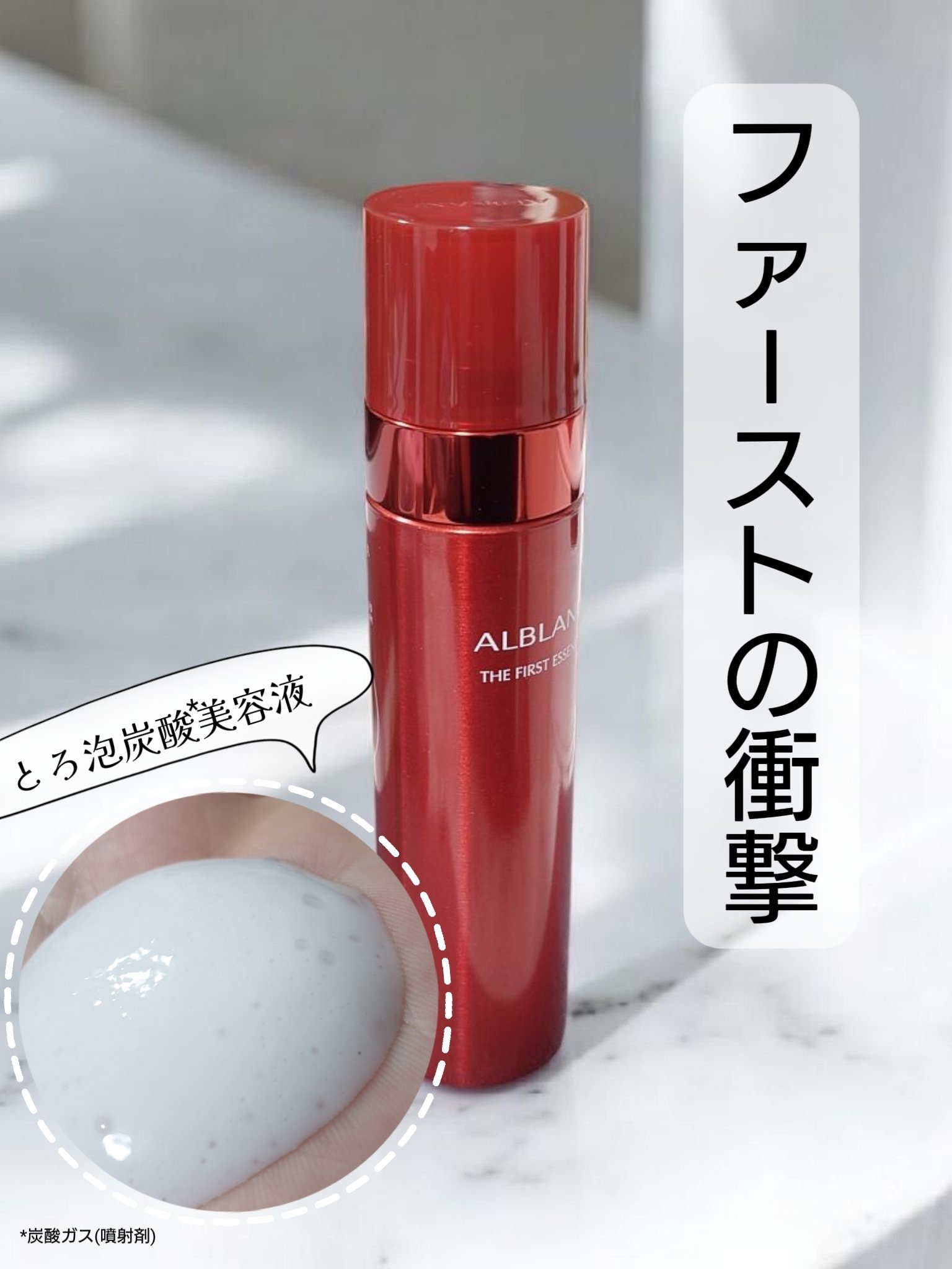 - 【医薬部外品】 潤いを巡らせる高密度*2な炭酸泡*1の美容液 より高密度*2な炭酸*1泡が角層の奥深く浸透し、うるおいが駆け巡り、光溢れる透明感を生み出す。この新たな美しさをあなたへ。 ・潤ってキメを整え明るい透明感へ:日本で唯一*3ALBLANCに配合センレンシエキス(保湿) *3 日本で唯一薬用化粧品にALBLANCが配合(22年12月時点) ・シミ・ソバカスを防ぐ*4:有効成分カモミラET配合 ・ブランケア成分Ⅱ(保湿)配合 *1 炭酸ガス(噴射剤) *2 改良前薬用ファーストエッセンスとの比較 *4 メラニンの生成を抑え、シミ・ソバカスを防ぐ