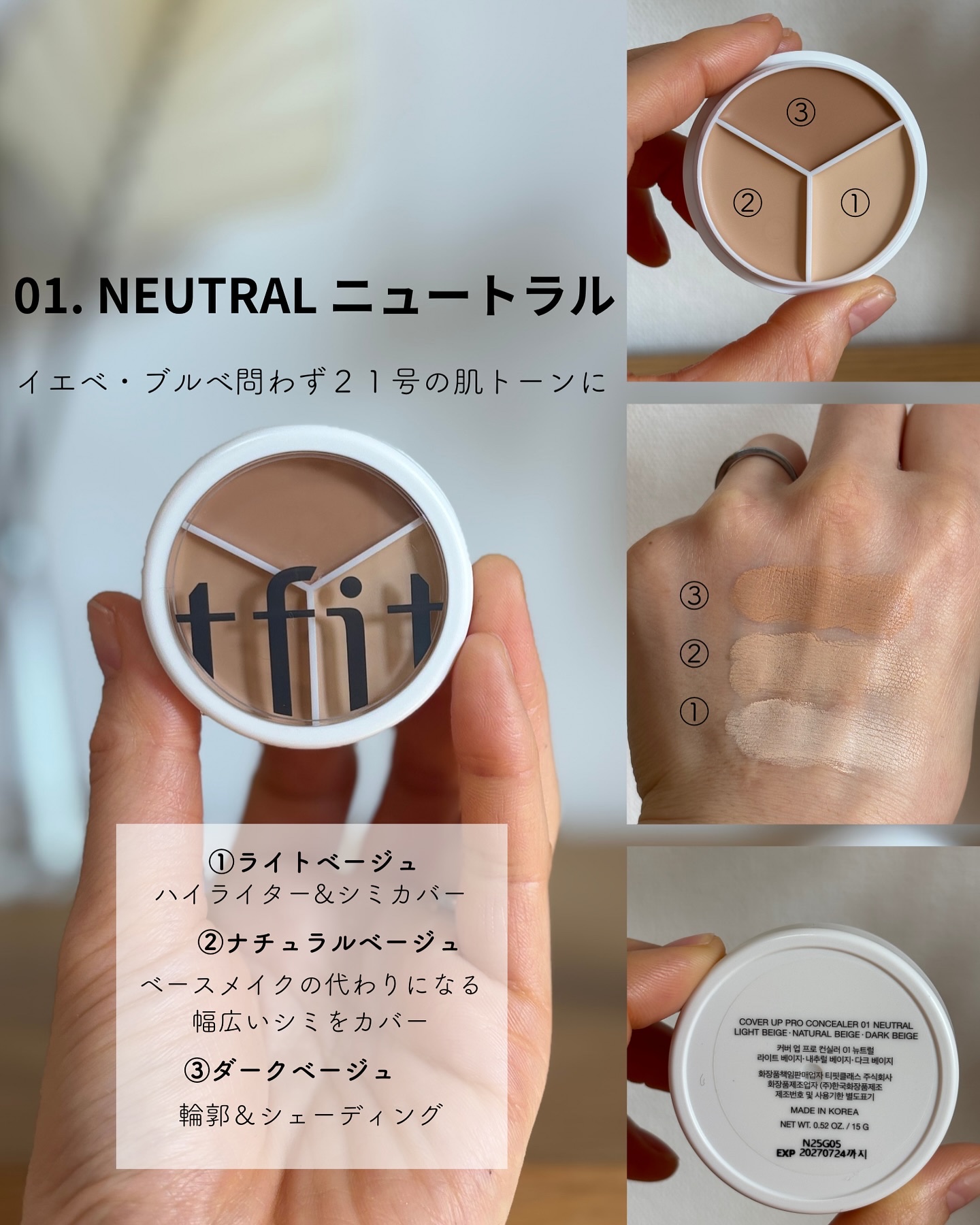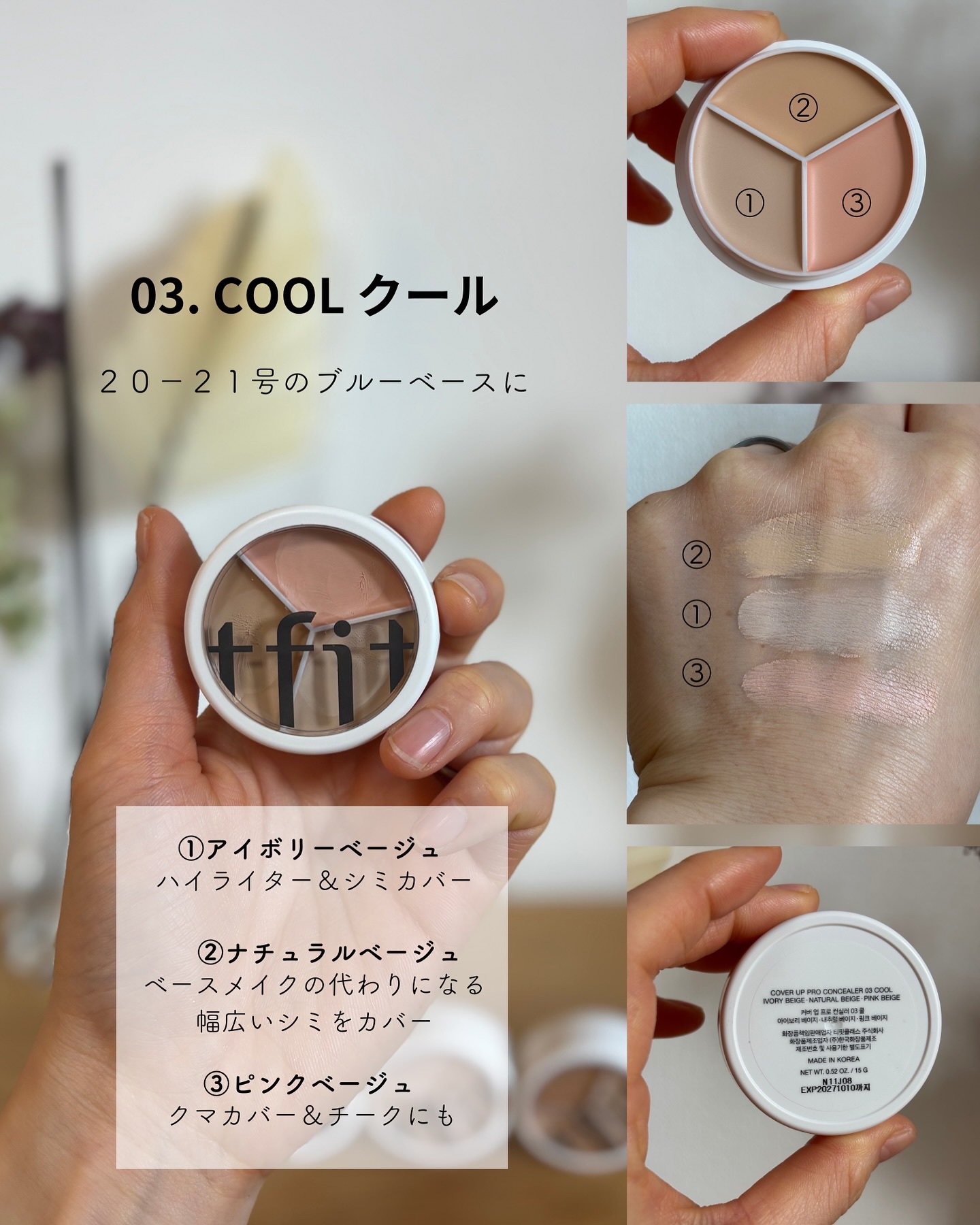 TFITのカバーアッププロコンシーラーを5色レビュー✨️ カラバリ豊富なので肌悩みや肌トーンに合わせて選べるのがうれしい🙆♀️ 🔥通常販売価格:1650円→メガ割価格:1155円🔥